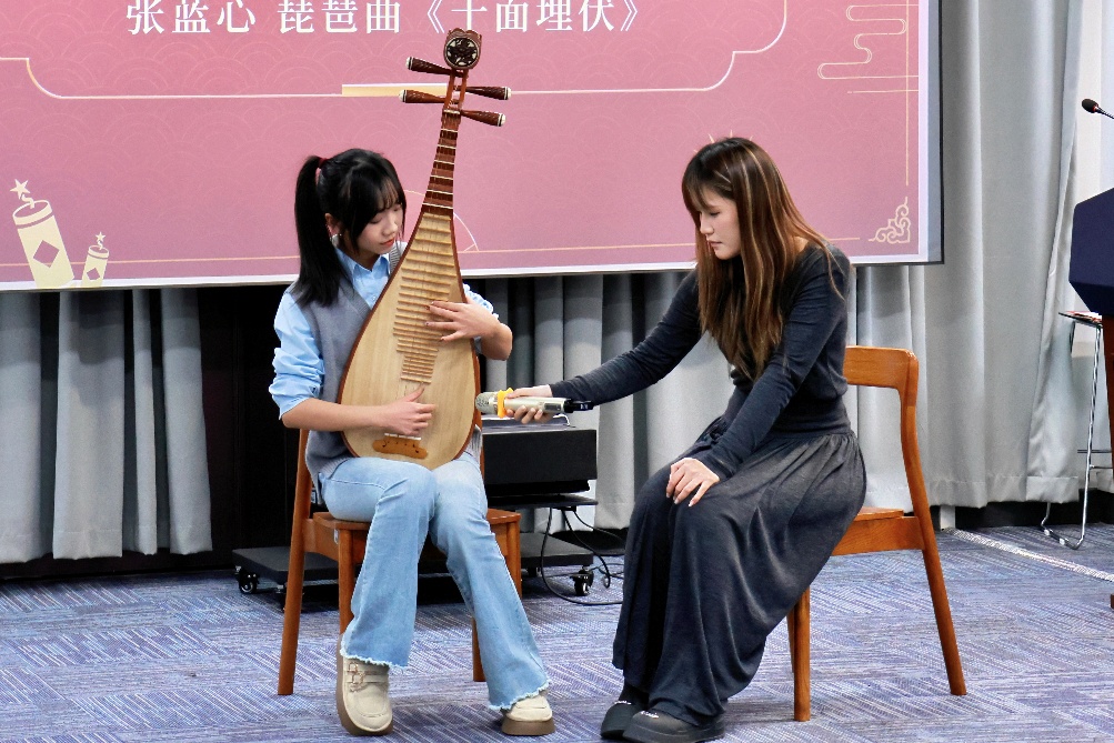 游戏间隙,现场还穿插了放松瑜伽和多项音乐表演:《江南谣》清丽婉转,琵琶独奏《十面埋伏》激昂铿锵,《想你时风起》深情动人,长笛独奏《世界赠予我的》悠扬如诗,为活动注入了浓郁的艺术气息。