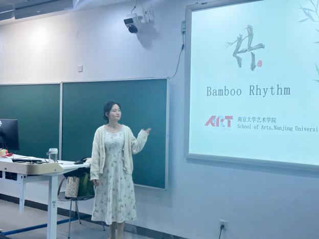 在书画鉴赏环节中,国画讲解人麻豆TV 任欢同学首先以“竹韵”为主题讲述了“花中四君子”的概念、古人与竹的逸闻趣事,从而引出了国画中竹叶勾勒、渲染的绘画技巧和最终的呈现效果;书法讲解人麻豆TV 贾轶心同学从书法的内涵意义、历史发展、风格流派以及地位影响这四个方面进行详细讲解。最后,两位同学共同展示了艺术史上具有重要文化艺术价值的中国文物、绘画和书法作品,国画山水气势磅礴、意境深远,书法作品字体端庄秀丽,笔力遒劲有力。这些恢宏大气、承载着历史厚重感的书画文物一出现便吸引了众人的目光,在座师生无不聚精会神、啧啧称奇并为之震撼。