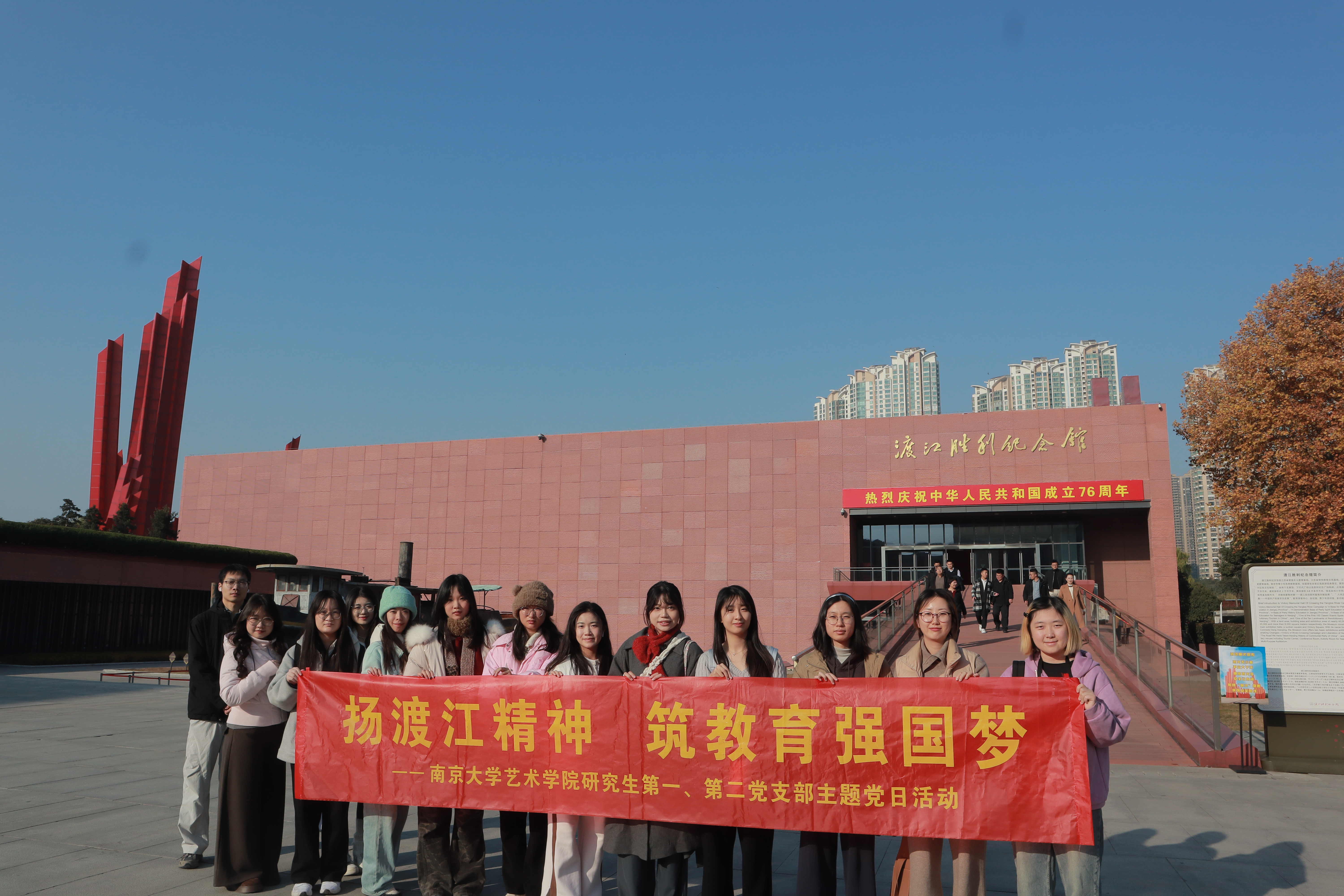 为深入学习贯彻习近平总书记关于教育强国的重要论述,赓续红色血脉、厚植家国情怀,2025年12月6日,麻豆TV 研究生第一、第二党支部联合开展“扬渡江精神 筑教育强国梦”主题党日活动。活动以“重走渡江路”为主线,党员们从浦口校区出发,经浦口码头渡江至中山码头,徒步前往渡江战役胜利纪念馆,以沉浸式行走课堂回望革命历程,汲取奋进力量。此次党日活动旨在通过实地学习强化党员政治品格与时代担当,为建设教育强国贡献青春力量。