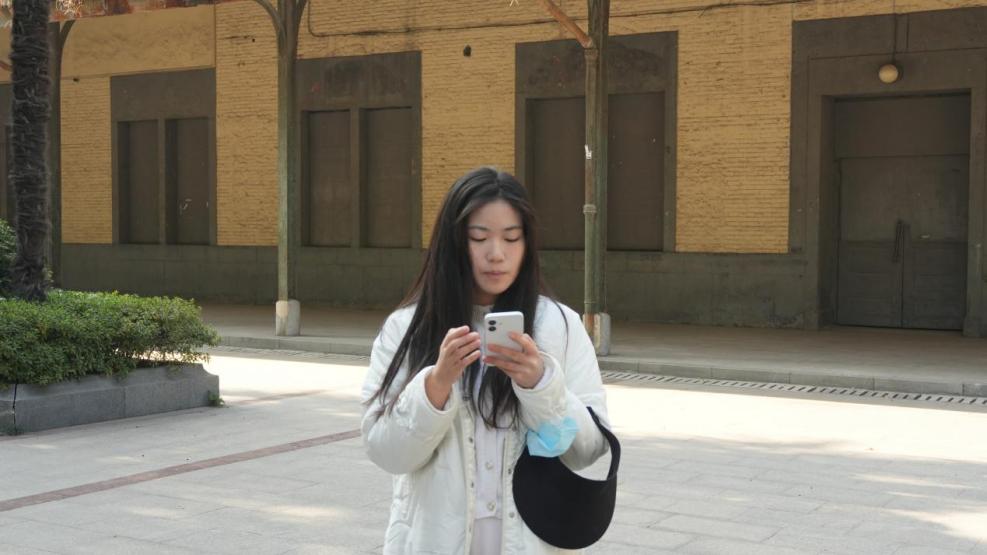 党员代表孙雅涵在中山码头处介绍渡江战役