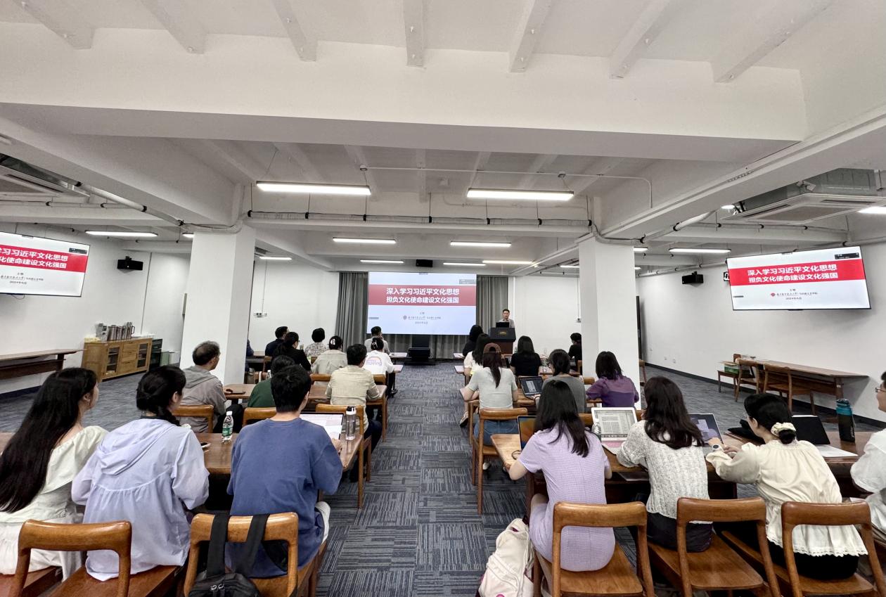 王智教授通过报告会辨析了思想文化及意识形态领域热点与难点,教育师生党员理解新时代发生的全局性、根本性转变,深刻认识习近平文化思想的时代背景、科学内涵和实践要求,围绕在新的历史起点上继续推动文化繁荣、建设文化强国、建设中华民族现代文明这一新的文化使命,坚定文化自信,秉持开放包容,坚持守正创新,贯彻落实好“七个着力”。