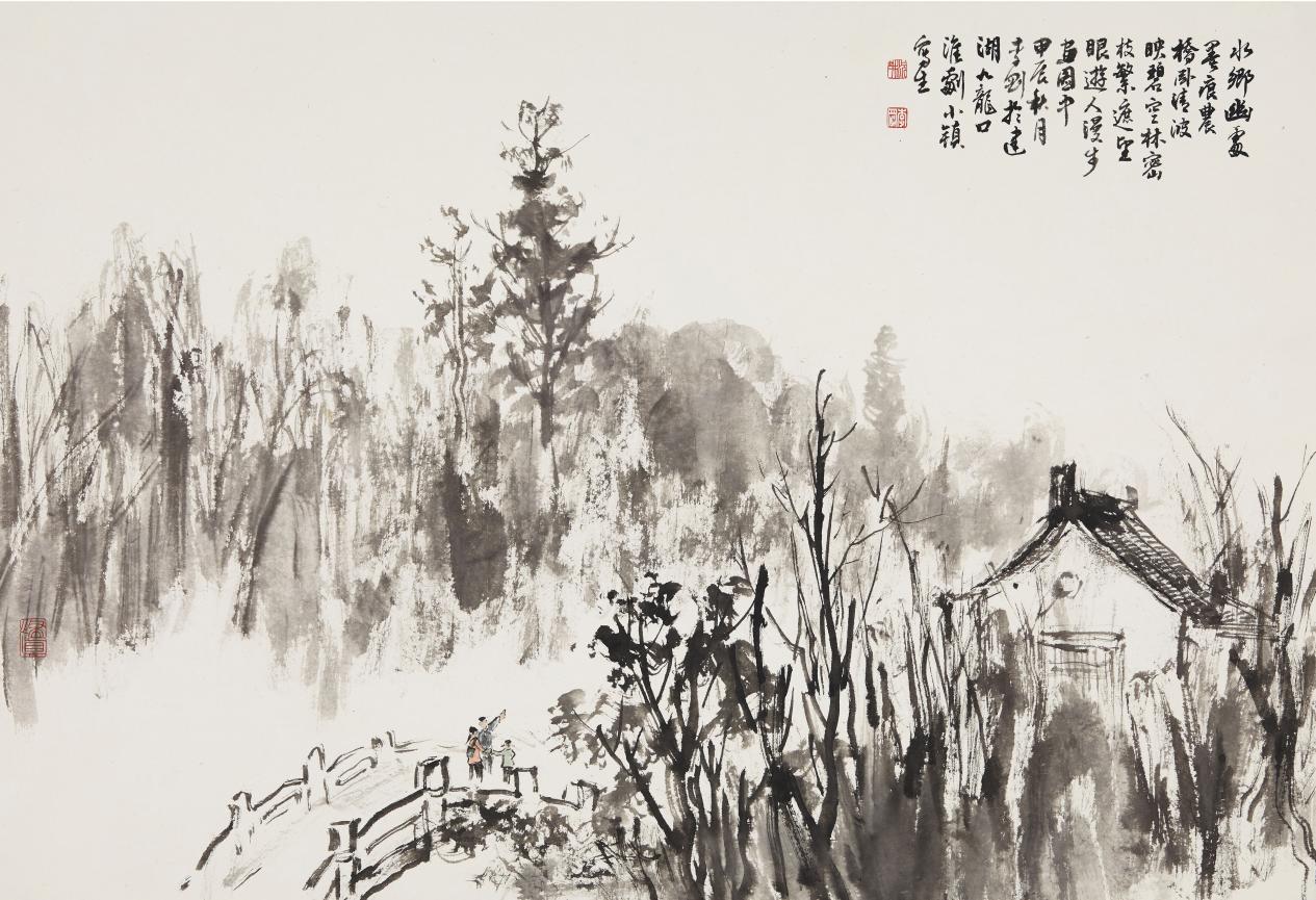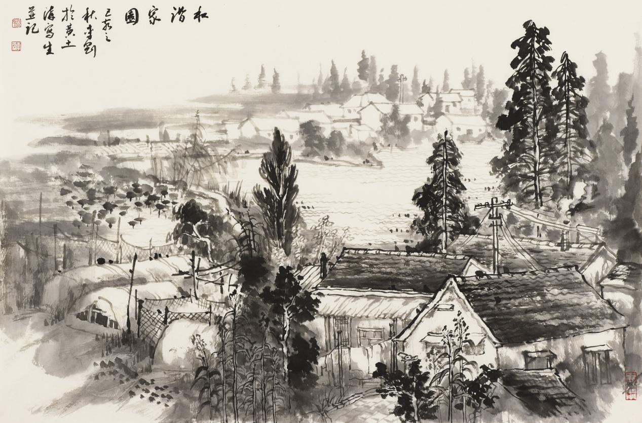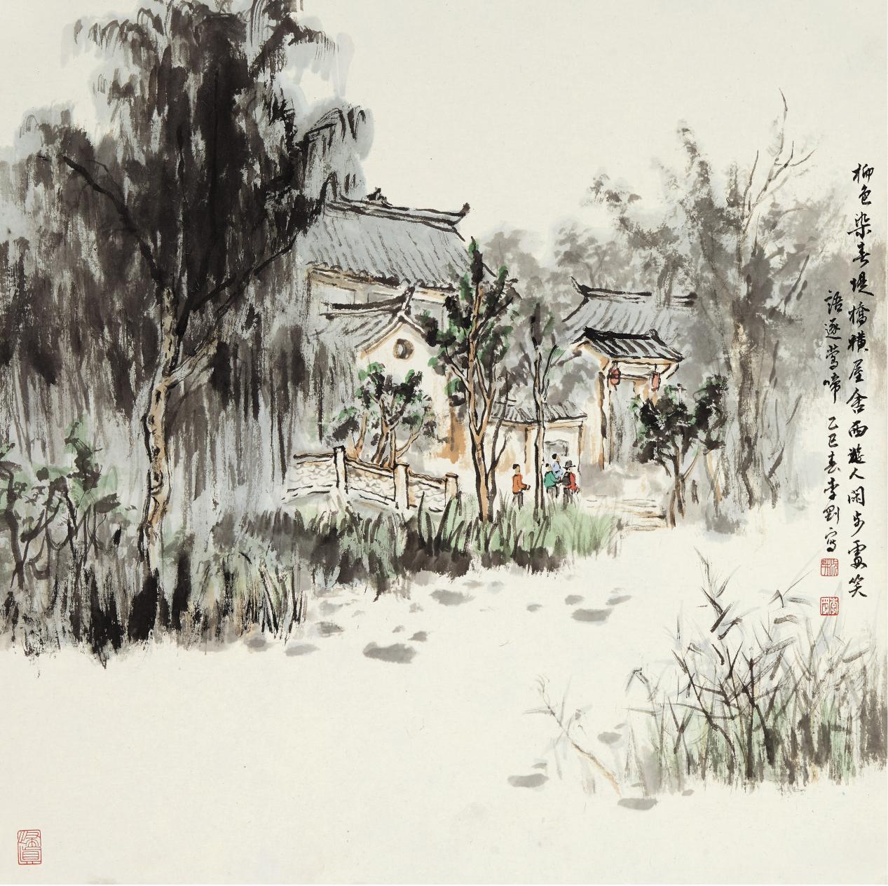 李刚浸淫传统山水画多年,深研历代诸家,尤重董源一脉南宗源流;于近现代则倾心于陆俨少云水流韵、黄宾虹浑厚华滋,此二者与其温厚性情及水乡生活体悟相契相融,逐渐淬炼出渊源深厚且颇具个性的笔墨语言。其近年新作《灵龙水乡淮杂故里》、《大美九龙口》等系列,以平远视角聚焦家乡建湖风物─芦荡滩涂、舟楫渔网、村落农人、走兽飞鸟交织成一幅幅“村在水中筑,人在荡中游”的农家生活场景。其笔墨松动氤氲,层次丰沛华滋,水乡温润气息跃然纸上。青绿之作如《青山幽居》,追求墨彩天然契合,格调淡雅清新;《岁月静好》则另辟蹊径,以蕴含装饰美感的形式风格,与精心提炼的生活符号相得益彰。