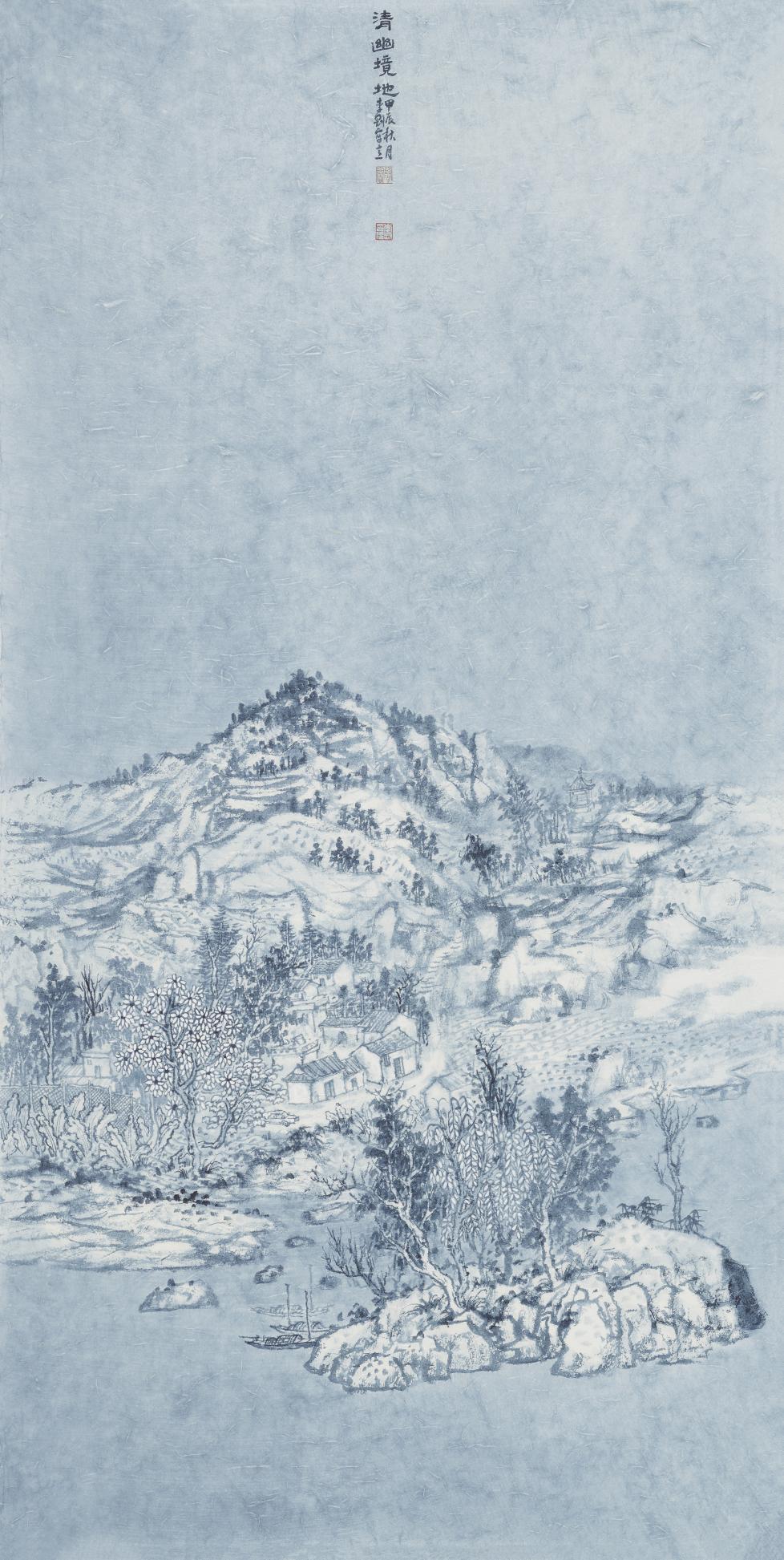 身为年轻画家且拥有着开放心态,李刚关注现当代艺术潮流并善于适当吸纳,籍以推进绘画的单纯性而化繁为简。如《蓝色畅想·家园》中,巧妙运用“清水云龙”纸与花青撞水的渗化纹理,在营造丰富视觉层次与空灵意境之同时,融入平面构成之简练。李刚遍迹南北各地,以敦厚而松灵之笔描绘齐鲁雄峰、苏北芦荡与江南园林等地域风貌与神采。其画面渐由具象而升华为意象,笔墨则由写实而渐入虚灵之境。“画为心迹,境由心生”,李刚从不满足于现状而乐于精进不止。其表现愈趋成熟而手法时有新变。但其作品内质则始终如一,正是温文尔雅、淡然闲适个性之写照,于平淡冲和中蕴涵着雅健清逸之气。