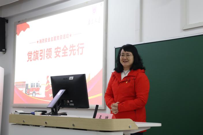 艺术学院党委书记石红梅参加了本次党日活动,她表示消防安全是校园安全的重要组成部分,关系到广大师生的生命财产安全,在消防安全月举行本次活动是及时且有意义的。她勉励大家作为党员,要牢固树立全民消防、安全至上的意识,学习消防员“刀山敢上、火海敢闯”的精神,发挥党员先锋模范作用,增强使命感和责任感,努力以小切口实现大作为,作为青年党员,能够以此次消防安全主题党日活动为契机,深刻理解、把握和践行总体国家安全观,为实现中华民族伟大复兴的中国梦贡献青春力量。