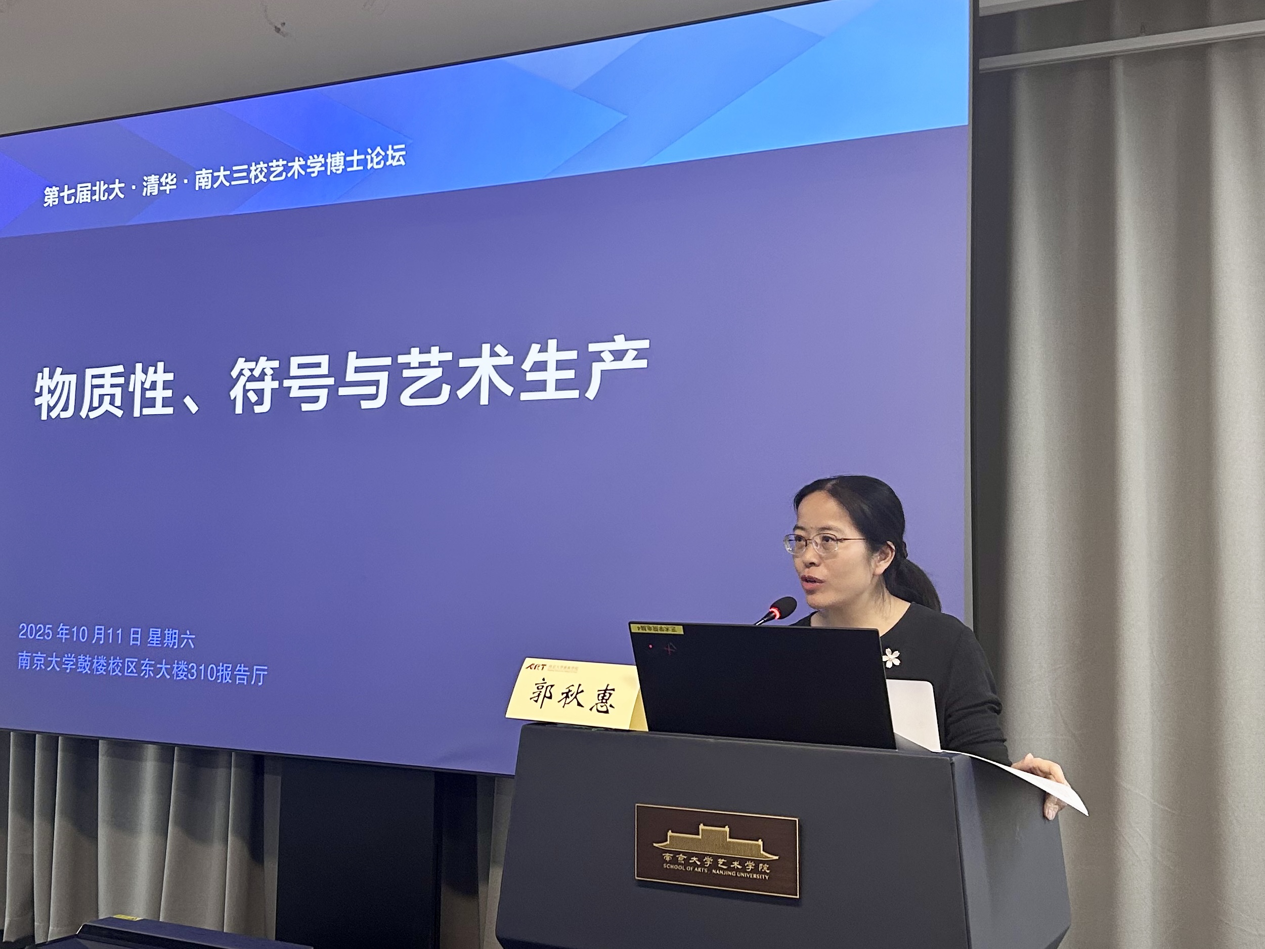 2025年10月11日,第七届北大·清华·南大三校艺术学博士生论坛于南京大学艺术学院东大楼310报告厅举行。依照北京大学艺术学院、南京大学艺术学院与清华大学美术学院艺术史论系联合(轮流)举办的惯例,本届论坛由南京大学艺术学院主办,论坛议题为“物质性、符号与艺术生产”。