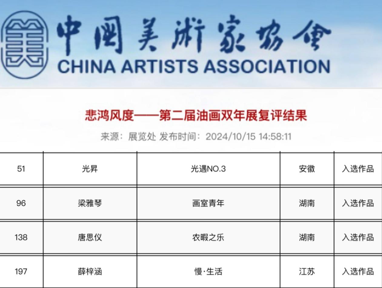 在此背景下,我院学子以高度的热情与卓越的才华,积极响应号召,创作出了一系列令人瞩目的优秀作品,在“中美协—悲鸿风度第二届油画双年展”、“江苏省第二届书法临帖作品展”、“江苏省第十三届油画展”多个重量级展览中大放异彩,取得了令人骄傲的成绩。具体名单如下。