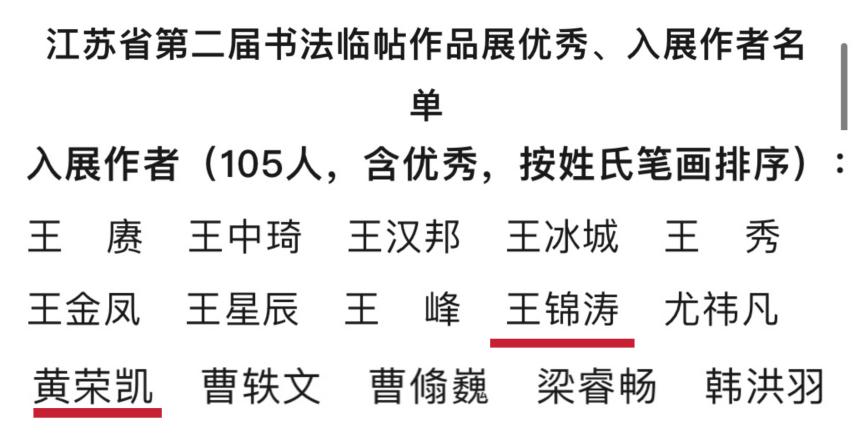 江苏省第二届书法临帖作品展 南京大学艺术学院入选名单