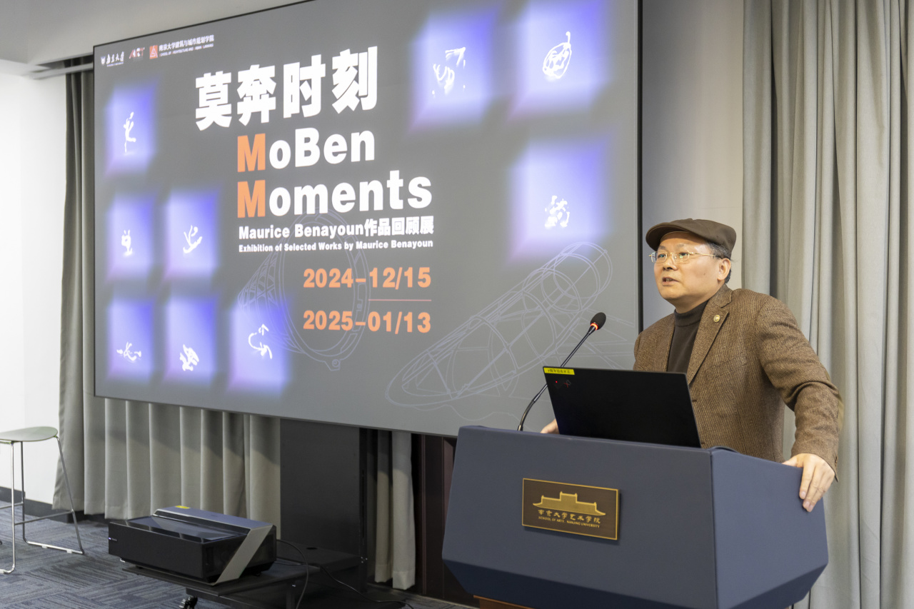 2024年12月15日下午,“莫奔时刻——Maurice Benayoun作品回顾展”在南京大学艺术学院东大楼美术馆开幕。本次展览由南京大学艺术学院、南京大学艺术与科技研究所共同主办,南京大学建筑与城市规划学院、南京大学人文社会科学双创人才实训中心协办,南京大学本科生院“本科教学联合创新实验室”项目支持,是新媒体艺术家、理论家和学者Maurice Benayoun教授正式入职南京大学的首次展览。