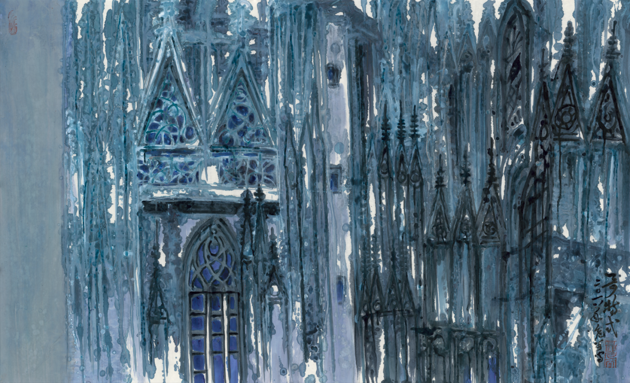 近日,我院荣休教授、著名画家聂危谷,向学院捐献宣纸彩墨作品《哥特式》。