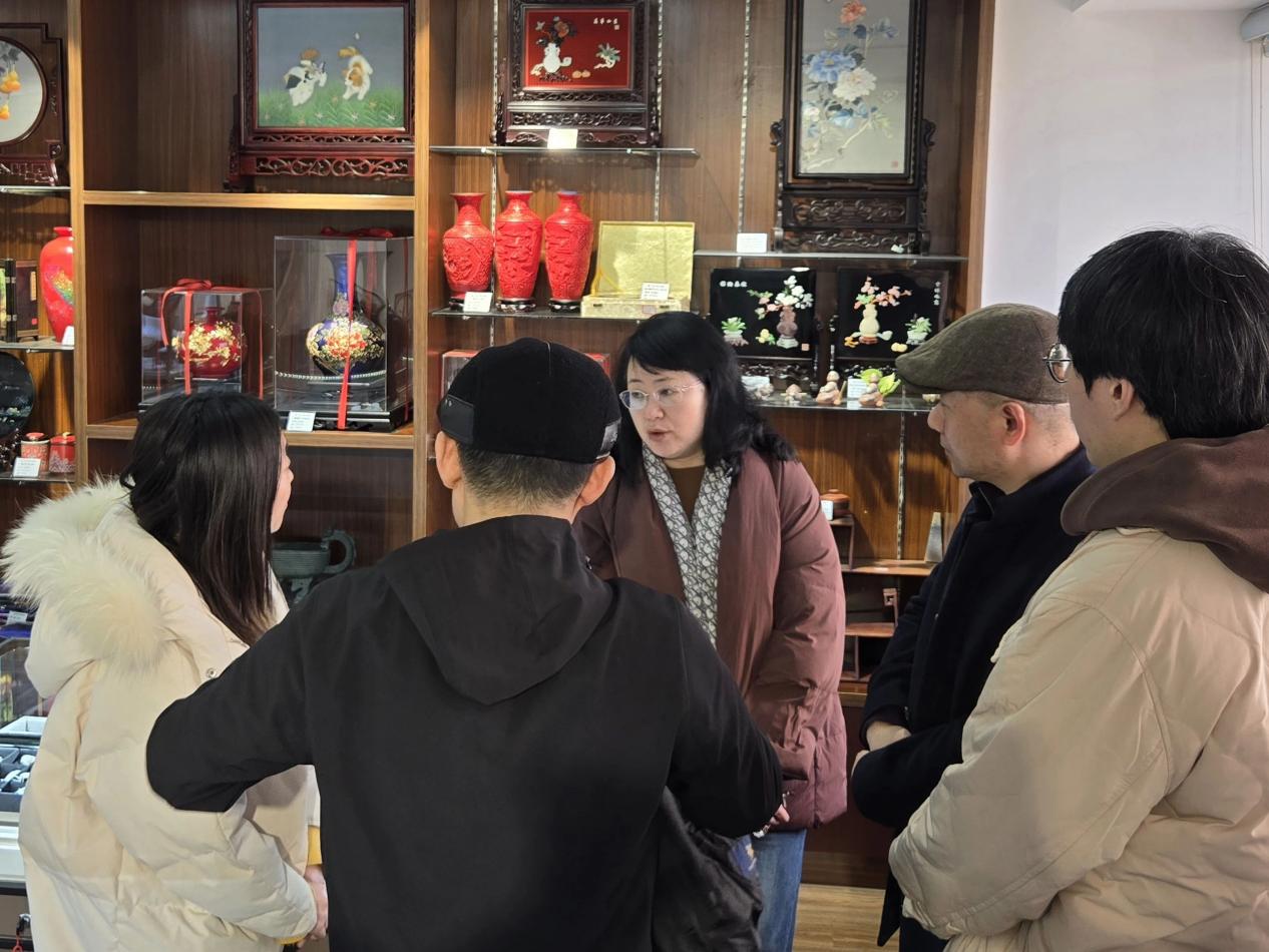 最后,与会人员一同参观了江苏省工艺美术有限公司对外销售展厅。通过参观,南京大学艺术学院的代表们更直观地了解了公司的产品和业务,也为双方未来在产品开发、文化传承等方面的合作提供了更多的思路和灵感。