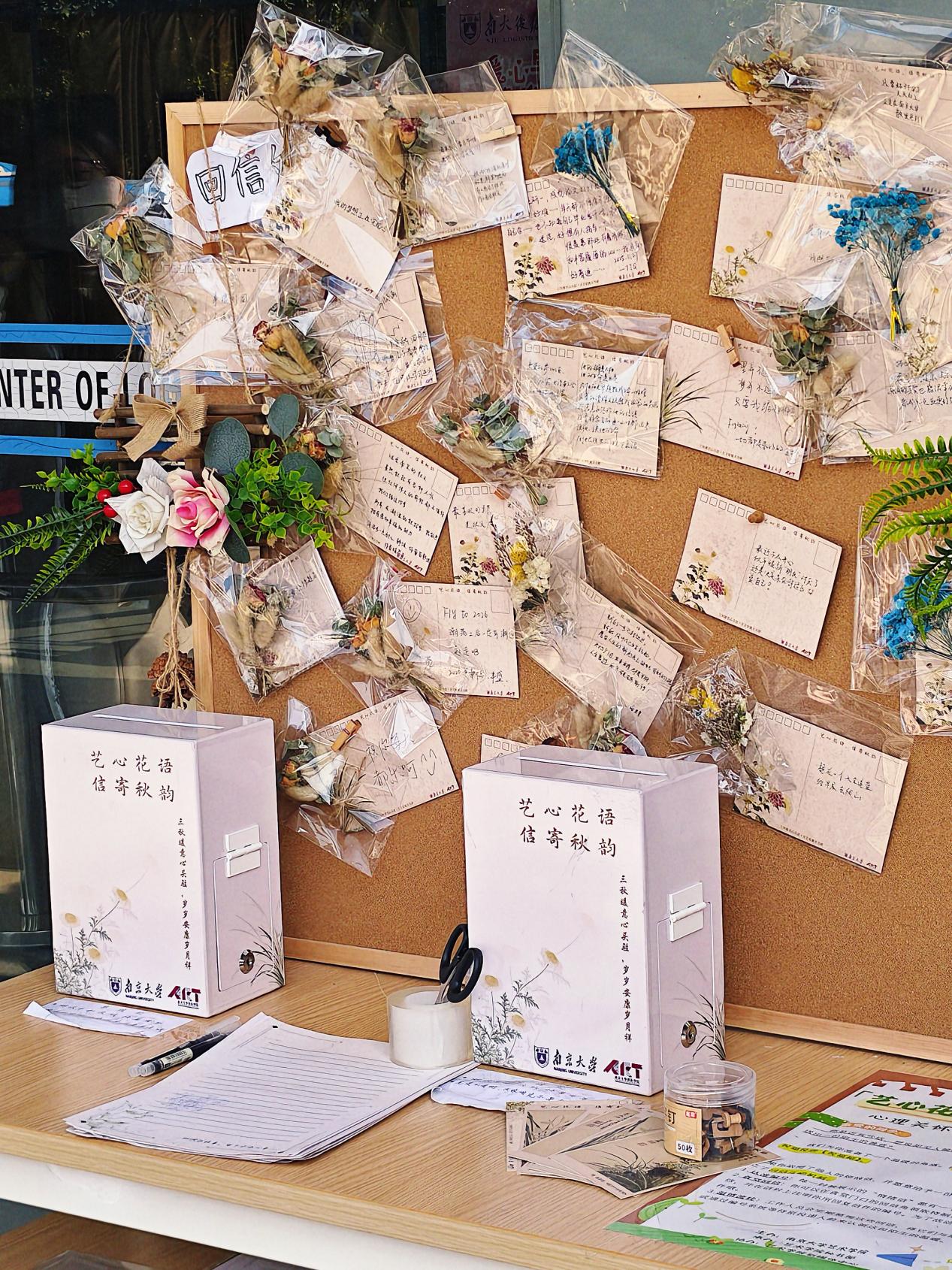 一个月的时间里,“艺心花语,信寄秋韵”不仅帮助数百名学子释放了情绪、收获了力量,更让“互助关怀”的种子在校园里生根发芽。活动凭借独特的艺术创意与温暖内核,成为浦口校区的热门话题,不少同学在社交媒体平台分享这份“秋日限定治愈”,称赞这是 “最有温度的校园活动”。