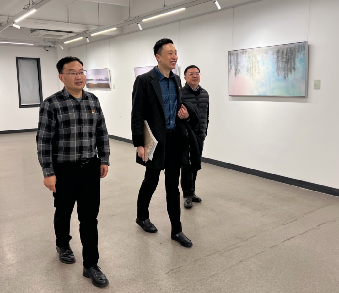 南京大学党委常委、党委宣传部部长、党委统战部部长闻羽出席此次座谈,他认为展览作品精细、震撼,体现了南京大学的高水准;同时指出艺术是跨文化的国际语言,本次展览的作品及画册(含英文翻译)是很好的国际传播素材,具有向世界讲述中国故事的价值。