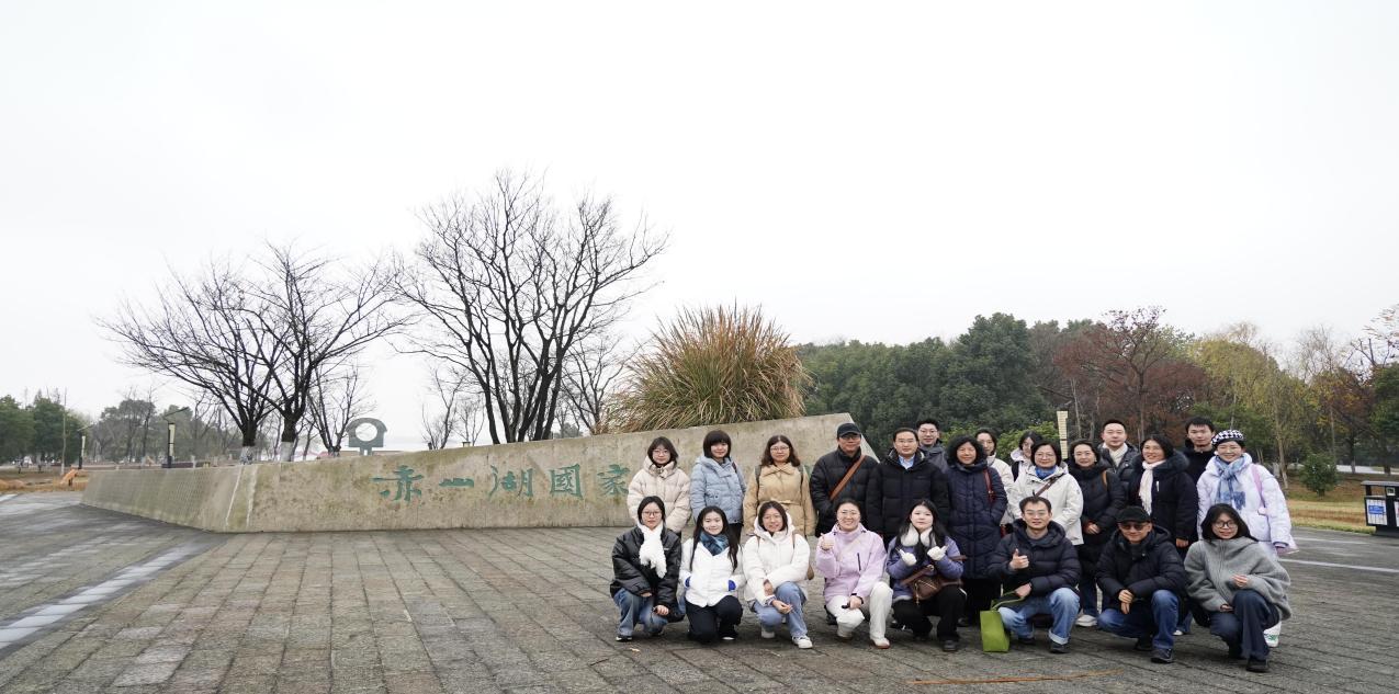 现场教学第一站来到句容赤山湖湿地公园,这是江苏省首家国家级湿地公园,也是长三角地区重要的生态湿地。学员们沿着环湖绿道穿行,虽因天气原因未能看到东方白鹳、小天鹅等珍稀鸟类,但学员通过科普展板了解了退渔还湖、植被修复等生态治理技术,更用脚步丈量赤山湖,近距离看到湖荡、沼泽、森林交织的生态体系,体会习近平生态文明思想的实践内涵。生态文明建设不是抽象概念,而是体现在清淤治污、栖息地保护等具体行动中,全体学员坚定了要把赤山湖成功经验转化为工作实际的信心,努力推动形成人与自然和谐共生的发展格局。