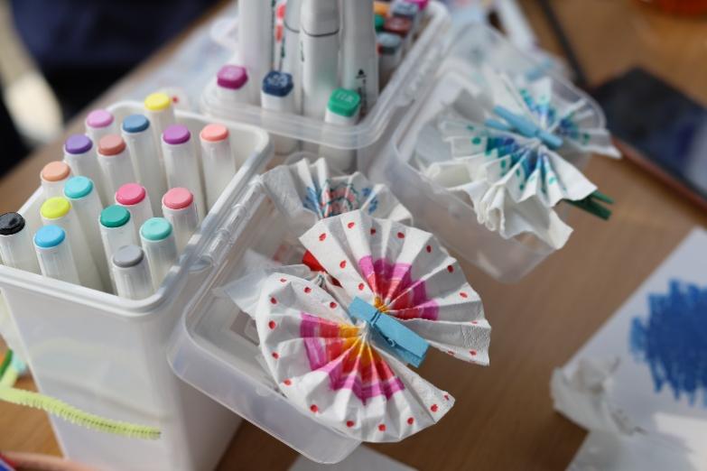 在专业同学的引导下,同学们学习了如何利用简单的材料制作出立体而生动的蝴蝶。他们精心挑选颜色,巧妙搭配,每一只蝴蝶都独一无二,充满了个性和魅力。橡皮圈和夹子在同学们巧妙的制作下,仿佛被赋予了生命,随时准备展翅高飞,每四朵花瓣的叠加,不仅仅是形状的创造,更是对自由精神的颂扬。