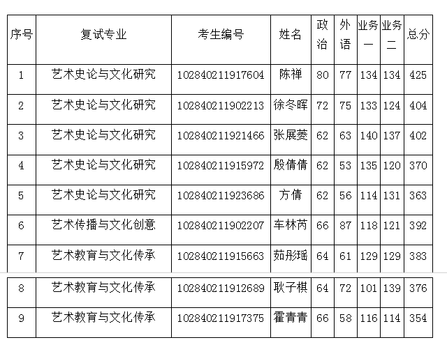 南京大学艺术学院2020年硕士研究生复试分数线、复试人数及名单