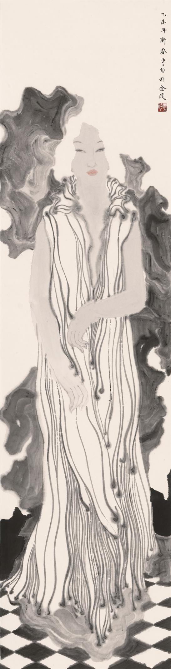 安萍萍 《踏歌》 纸本水墨 36cm×140cm 2015年