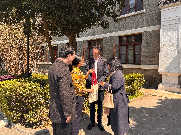 2025年3月20日,德国莱比锡大学(Universität Leipzig)孔子学院外方院长、东方研究系主任柯若朴、中方院长杨庆芳、执行院长田亚明以及南京市外办欧非处处长刘铮一行到访南京大学,与艺术学院举行了交流与合作座谈会。南京大学艺术学院院长赵奎英、外国语学院德语系主任陈民以及教师代表李茜、胡之月、王诗晓参加了座谈会。座谈会由王诗晓主持。
