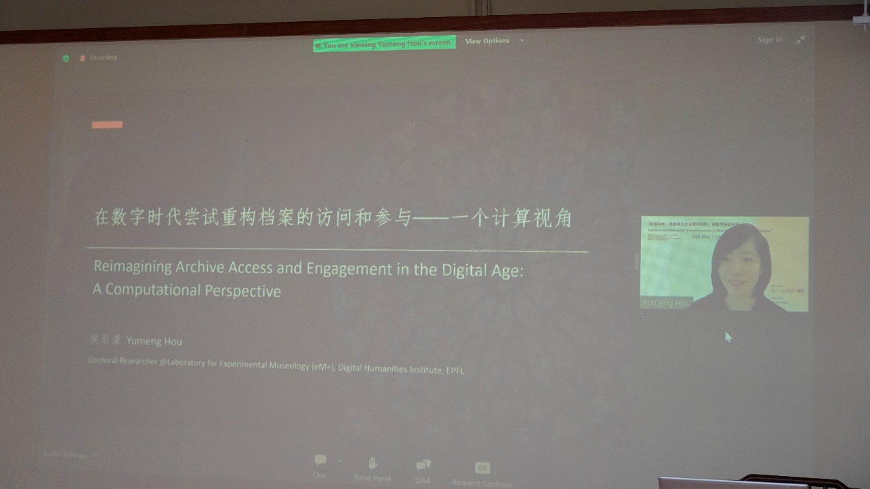 其后,瑞士洛桑联邦理工学院实验性博物馆学实验室数字人文研究员、博士研究生侯雨濛发表了名为《在数字时代尝试重构档案访问和参与——一个计算视角》的主旨演讲,探讨了三个发展主题,一是利用关键技术将视听内容转换为数据实体,以便规模化处理;二是探索新的计算方法,以创新地感知、访问和解读档案;三是通过智能、美学、情感和意义解读等方式拓展人机交互的边界,增添新的叙事层次,从而重构公众与数字文化档案的互动方式,进而提升对文化遗产的参与和体验。