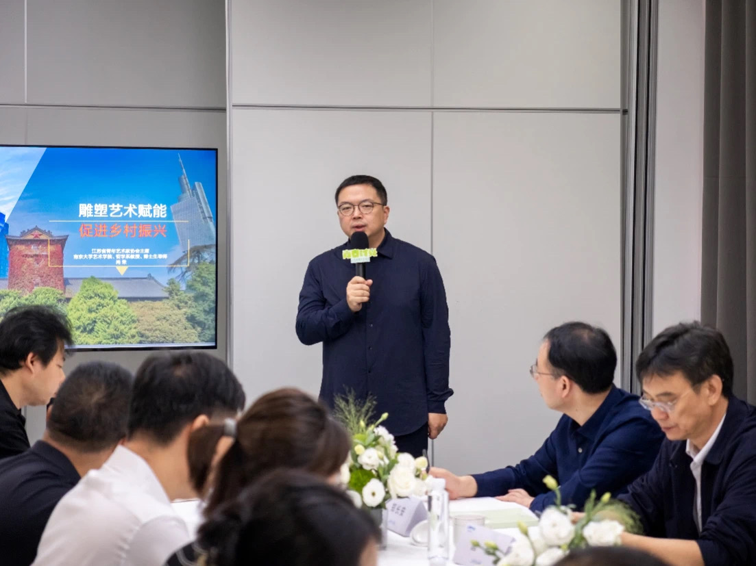 在开幕式之后,进行了“艺术赋能、乡村振兴”江苏青年艺术家发展论坛活动,论坛主要探讨如何以艺术链接起人与自然,助推乡村建设,以艺术融合加快乡村建设的步调,实现双向赋能与深度融合。尚荣教授做主旨发言,在论坛中分享了亲身参与的三个案例,并表示“雕塑作品不能脱离人民群众的需要,不但要强化文化的顶层设计,也要考虑当地的文化底蕴来塑造”。随后,青年艺术家们分别从绘画、书法、影视、策展、设计、摄影、新闻、协会工作等领域发表了自身对“艺术赋能、乡村振兴”的理解和观点,他们纷纷表示艺术赋能乡村振兴不是简单的机械融入,更不是一劳永逸的,乡村不仅仅是对应城市的物理空间,更是文化传承的基因库与样本地。指出了目前存在的问题,提出了有效的建设方案。江苏省美协副主席、南京大学艺术学院副院长陆庆龙教授对与会的青年专家的发言做了评价。他认为青年艺术家代表们从各自的专业出发,结合实践热烈探讨,交流经验,此次论坛思想碰撞,成果丰厚。作为青年艺术家有责任以艺术唤醒乡村之美,以艺术赋能乡村振兴。此次论坛活动是青年艺术家协会深入贯彻党的二十大和中央农村工作会议精神的具体举措,引导青年艺术家用艺术赋能乡村振兴,为乡村振兴注入强大精神力量。