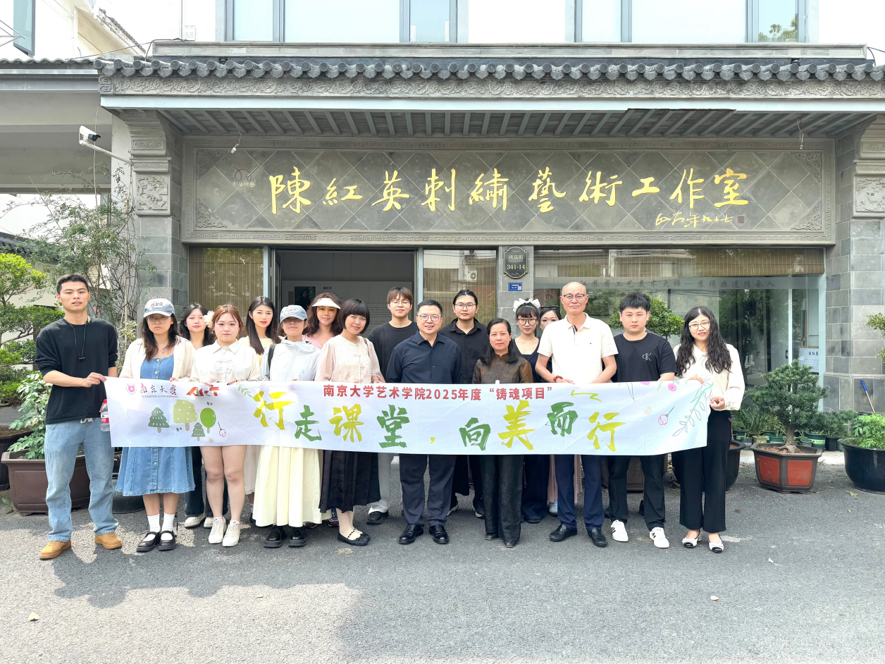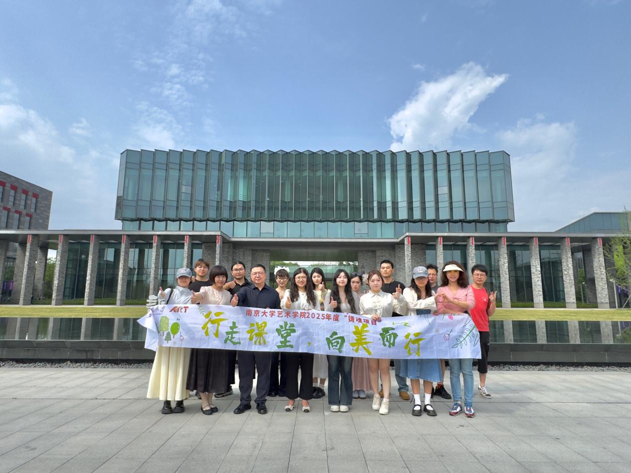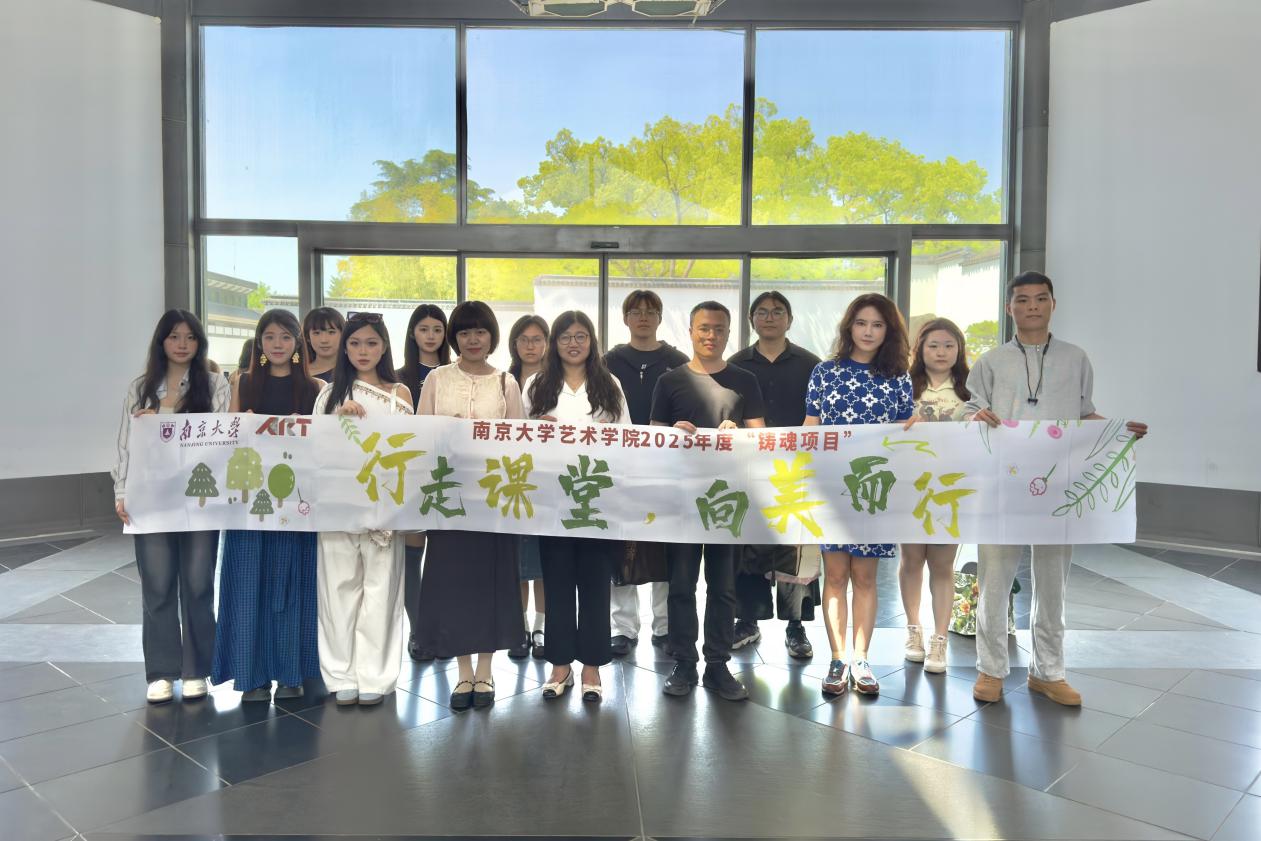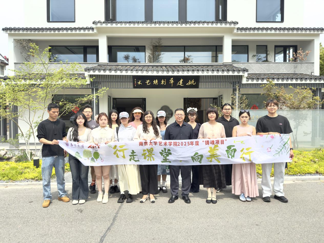 继“行走课堂”南通研学取得丰硕成果后,2025年4月18日-19日,南京大学艺术学院院长赵奎英、副院长尚荣、艺术理论与创意系特聘研究员袁梦倩、研究生辅导员陈小青带领师生团队再次踏上新的征程,并邀请江苏省工艺美术行业协会常务副会长兼秘书长宋建根作为随队指导,前往苏州开展研学活动。苏州,织就中华文化璀璨华章,素有“丝绸之府”“锦绣之地”等美誉。此次研学聚焦历史文化、非遗工艺等主题,旨在通过实地考察、文化体验与学术交流的紧密结合,引导青年学子在历史文物中探寻文化之根,在非遗工艺中品味匠心独运,在艺术展览中领悟精神力量,为新时代美育与文化传承注入青春力量。