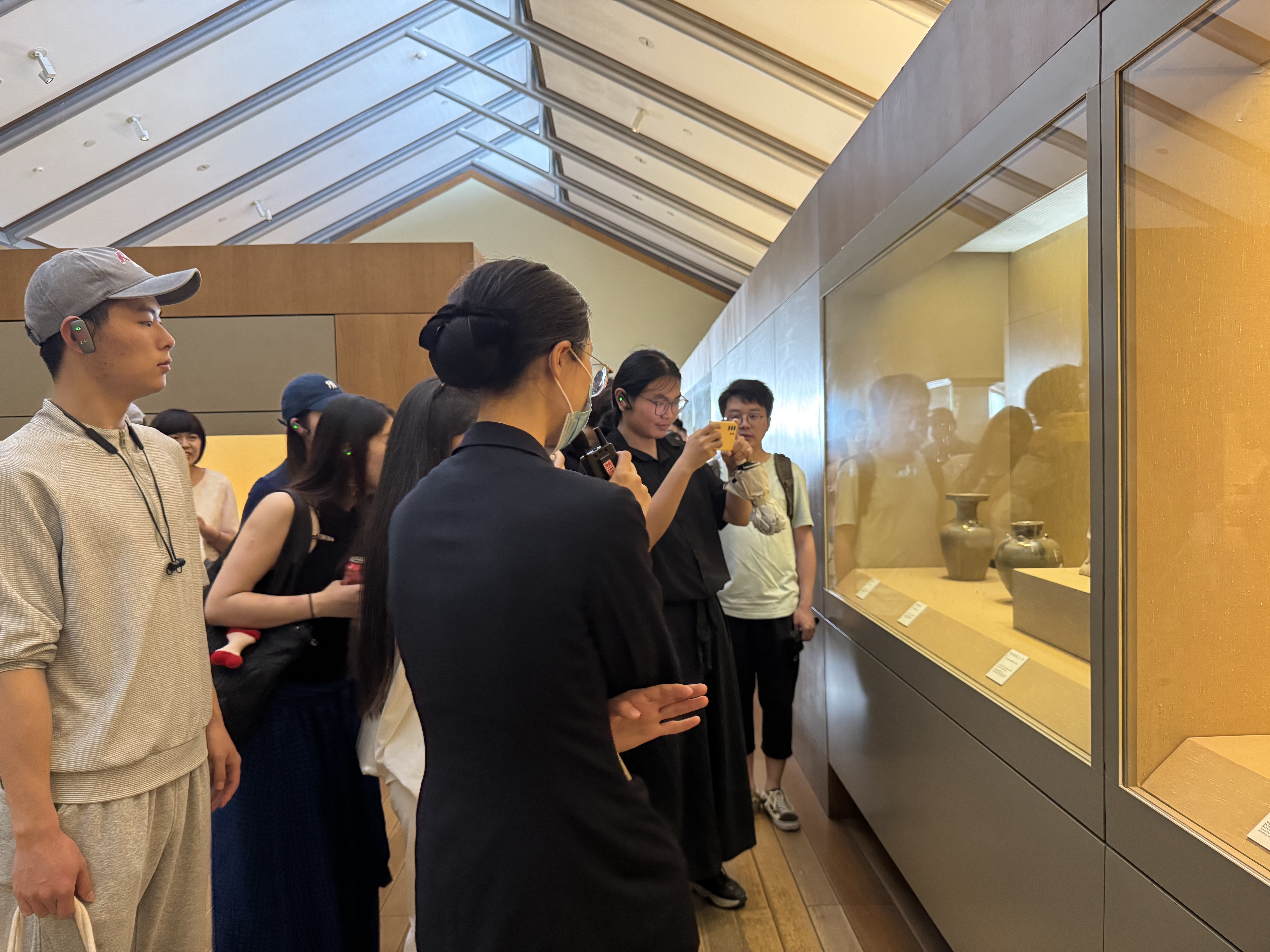 讲解员娓娓道来,深入浅出地介绍每一件珍贵展品背后的历史与文化故事,那些精美的刺绣与华丽的服饰,展现了古代工匠的精湛技艺;那些温润如玉的器物,经过岁月的洗礼,更显细腻光泽。师生们仿佛与古代艺术家们进行了一场跨越时空的对话,感受着传统书画笔墨之间抒发的情感与思想,领略中国传统文化的博大精深与独特魅力。参与学生表示:“此次参观活动不仅是一场视觉的盛宴,更是一次知识的汲取与心灵的滋养。对于我们艺术专业的同学而言,苏州博物馆宛如一座取之不尽的灵感宝库。”在这里,他们近距离接触到了传统艺术的精髓,感受到了不同艺术形式在历史长河中的演变与发展。