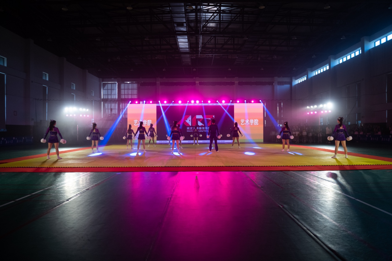 艺术学院啦啦操队以《一起向未来》《HelloKitty》《Touchdown》中、英、韩三首串烧歌曲作为背景音乐,结合啦啦操套路及技巧组合,将朝气与激情舞动,将活力与动感融合,用整齐划一的动作和独一无二的魅力来诠释青春活力的涵义。