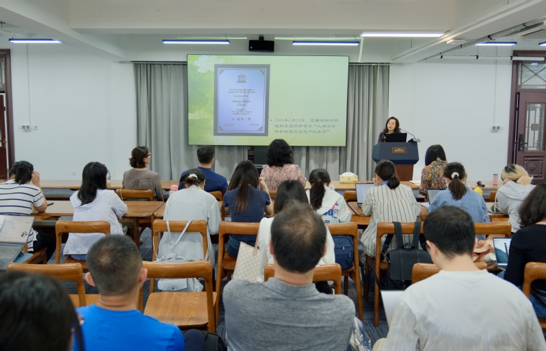南京大学艺术学院党委书记石红梅,南京大学艺术学院美术与设计系主任、江苏省青年艺术家协会主席尚荣,江苏省青年艺术家协会秘书长沈洁以及南京大学的硕博士研究生与昆曲爱好者们共同参加了此次活动,讲座由南京大学艺术学院发展与校友办公室主任、南京大学昆曲研究中心副主任范丽甍主持。