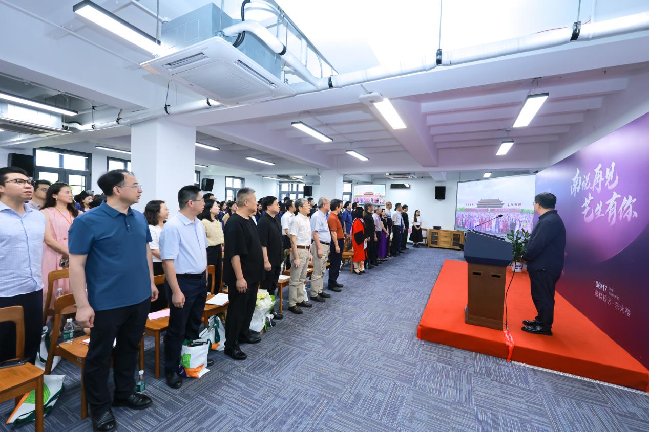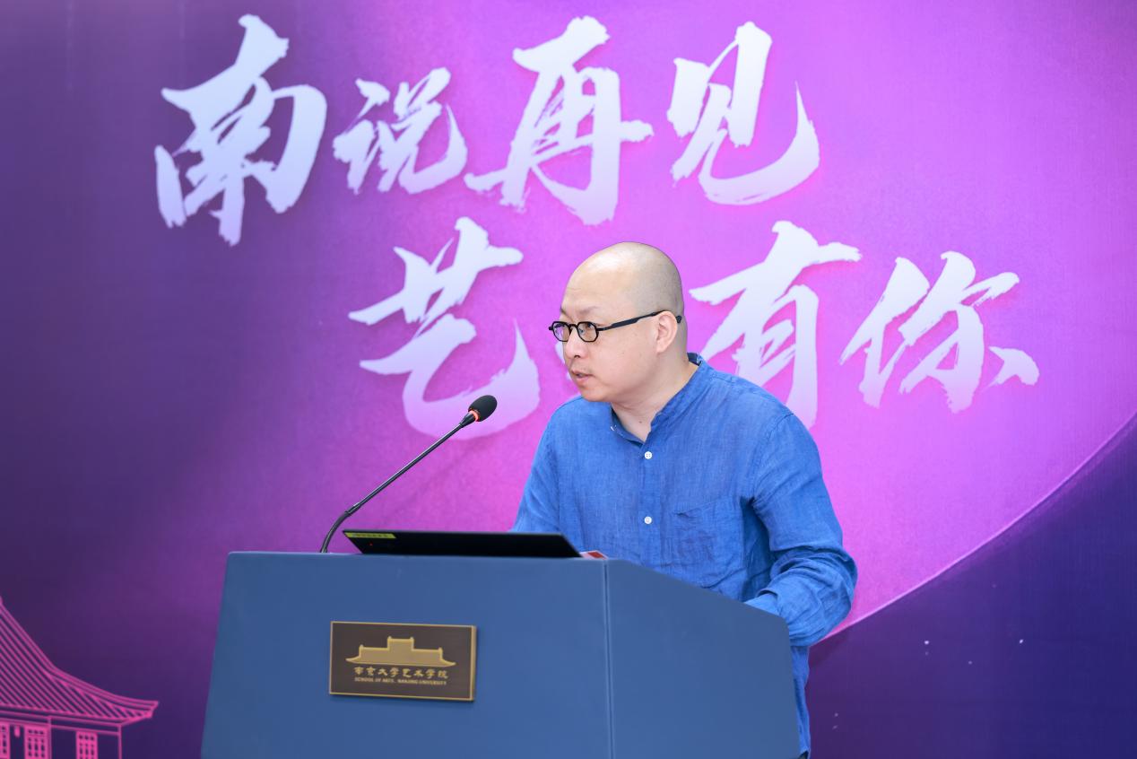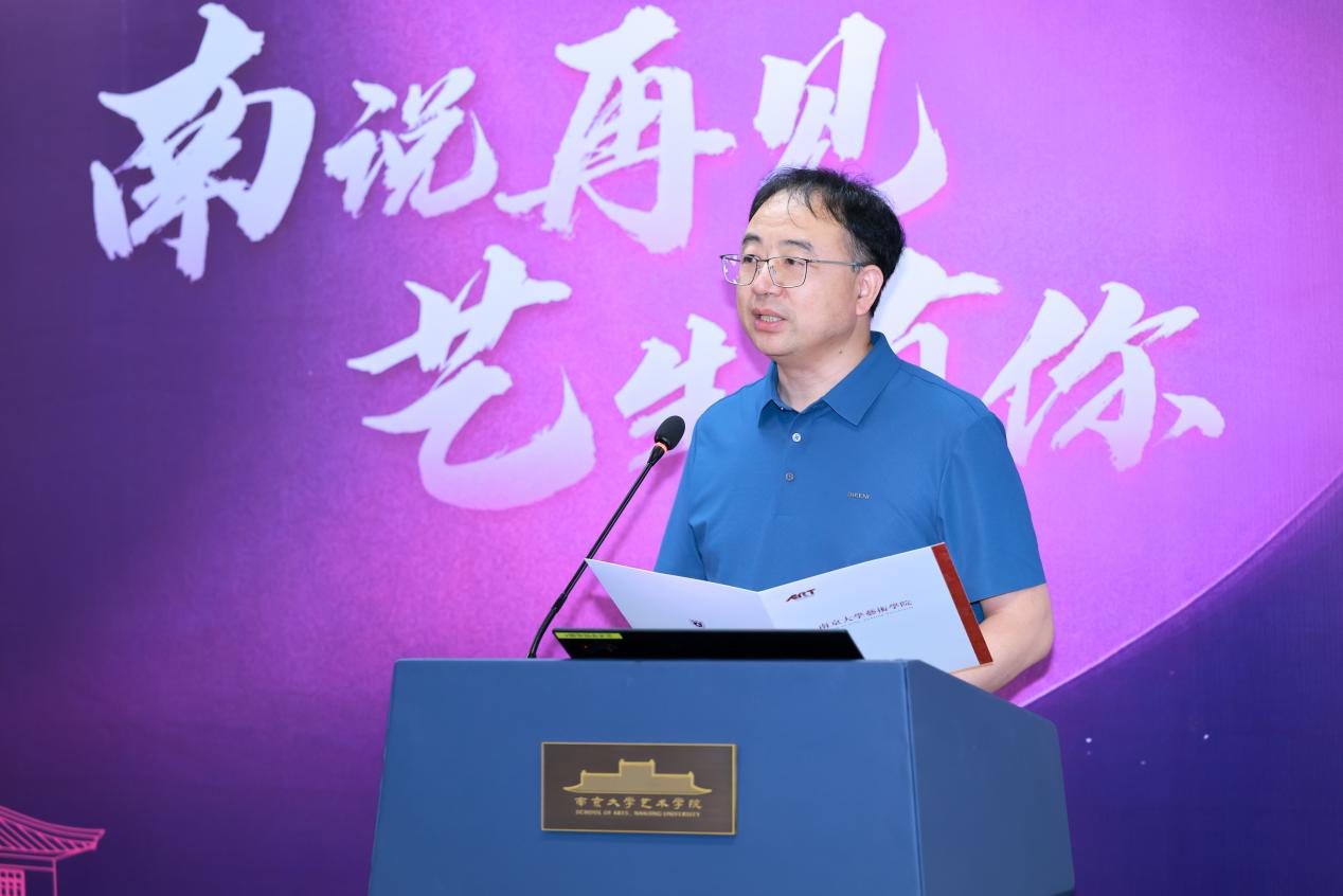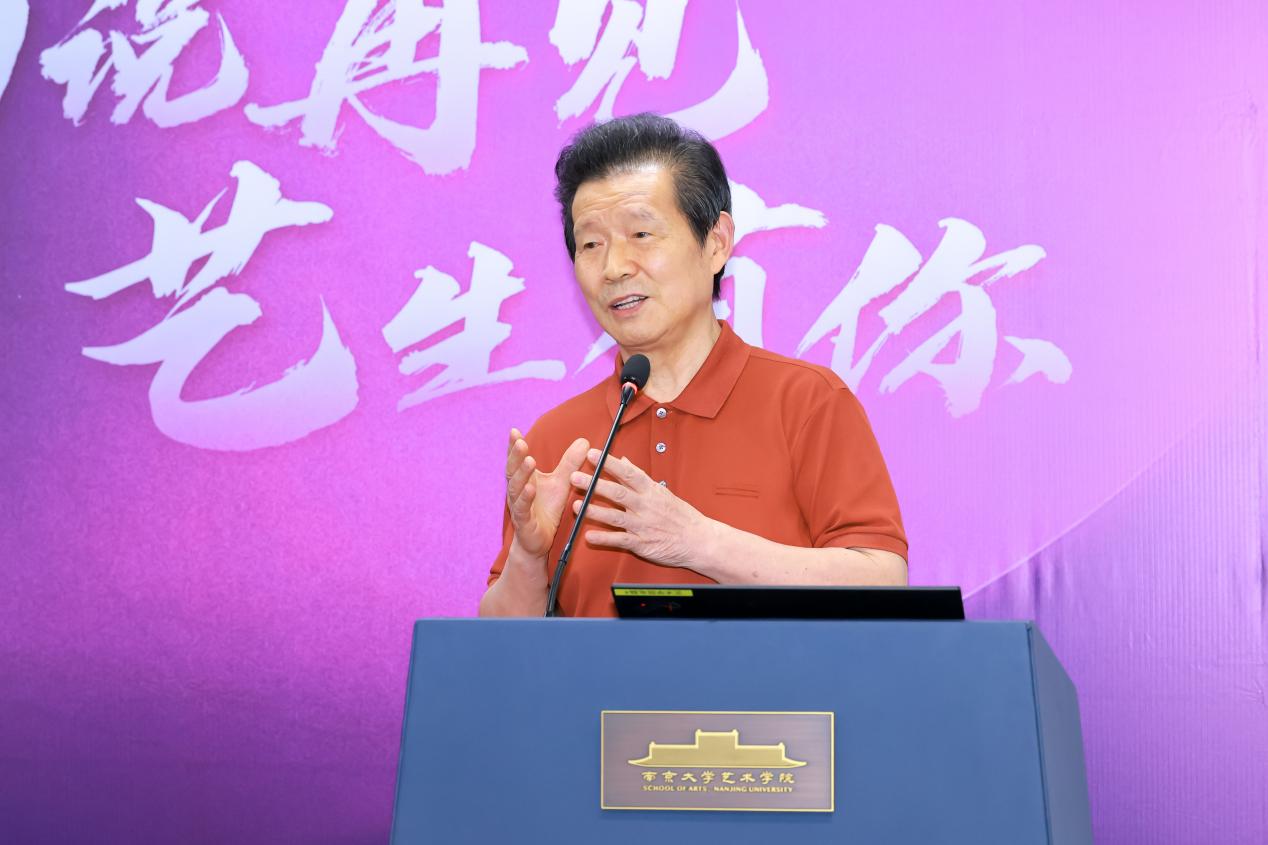 嘉宾寄语,情深意长。南京大学兼职教授、全国教育书画协会名誉会长兼全国高等书法教育分会会长言恭达先生,南京大学硕士研究生行业导师、江苏省政府参事、江苏省书法家协会副主席刘灿铭先生,以及江苏省文化馆党总支书记、馆长赵彦国先生作为嘉宾代表发表致辞,向毕业生致以热烈祝贺和美好祝愿。言恭达先生勉励毕业生,要铸造成长力,开拓创造力,并坚定文化自信。刘灿铭先生结合自身跨界经历,倡导毕业生尝试跨界融合,坚持终身学习,注重德艺双修等等。赵彦国先生分享了与南大艺术学院的深厚渊源,期待毕业生积极播撒美育星火,在不同领域守护艺术的光芒。