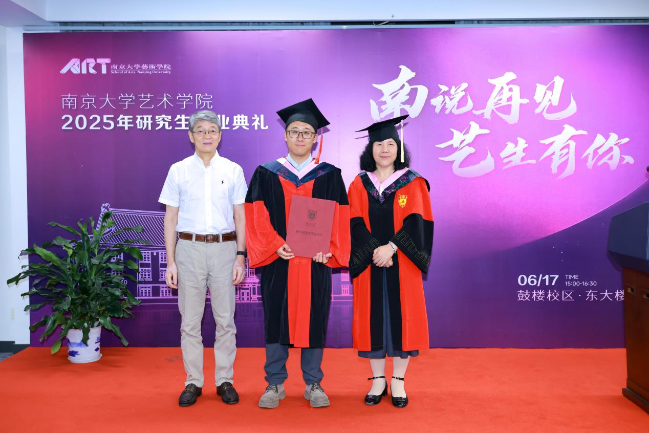 毕业典礼暨学位授予仪式由艺术学院副院长尚荣老师主持。出席典礼和仪式的还有南京大学文科资深教授周宪,艺术学院研究生导师和教职工代表,以及亲友代表。南京大学缪斯基金创始人、江苏国际文化交流中心理事申路女士,南京投石智能系统有限公司董事长孙峰峰先生受邀出席典礼。大家齐聚一堂,共为见证。
