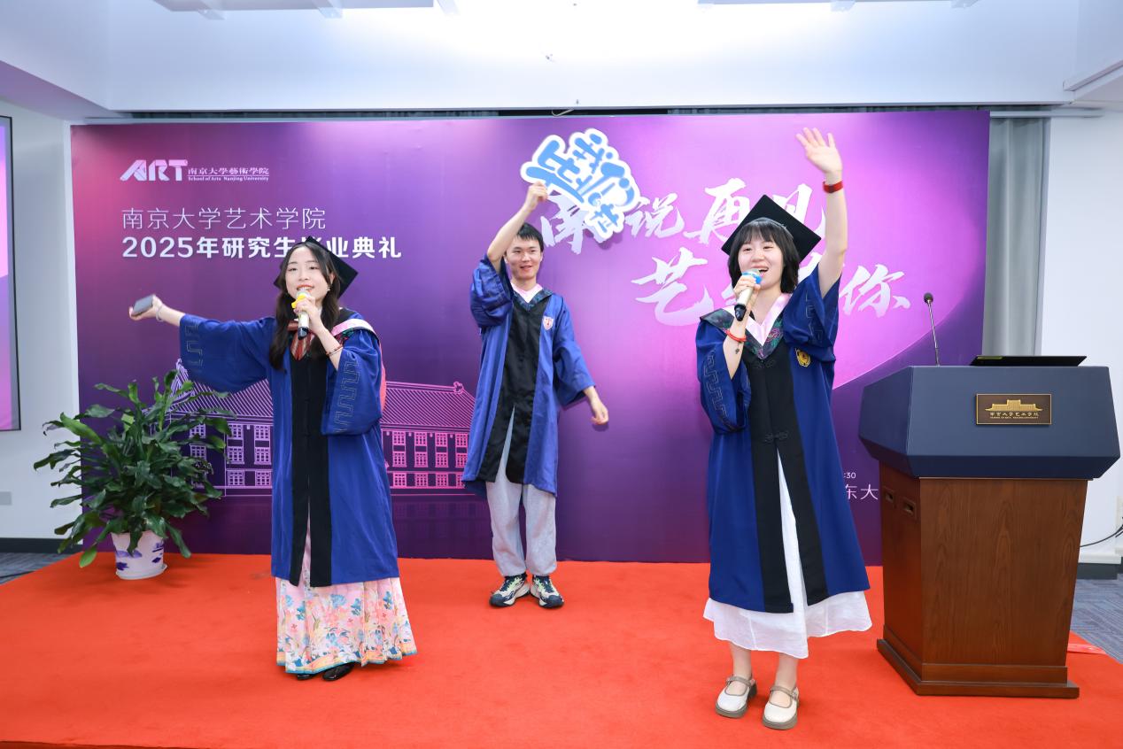 六月的鼓楼,绿意葱茏,生机盎然。承载着收获的喜悦与对未来的憧憬,2025年6月17日下午,南京大学艺术学院2025年研究生毕业典礼暨学位授予仪式在鼓楼校区东大楼艺术学院报告厅隆重举行。在典礼正式开始之前,全体师生共同观看了精心制作的毕业纪念视频,光影流转间,定格了同学们在艺术学院求知探索、挥洒青春的珍贵瞬间,让现场回荡着满满的回忆与温情。