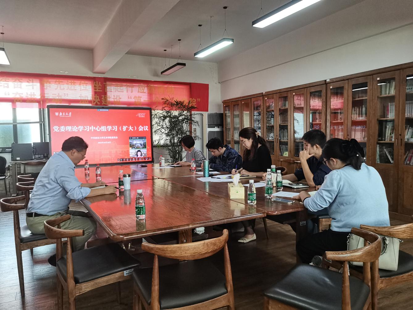 10月18日,艺术学院党委理论学习中心组召开学习(扩大)会议,学习宣传贯彻习近平文化思想。艺术学院党委书记石红梅主持会议并领学,党委委员尚莲霞做学习心得分享。艺术学院党委副书记、院长何成洲和党委委员、各支部书记参加学习。