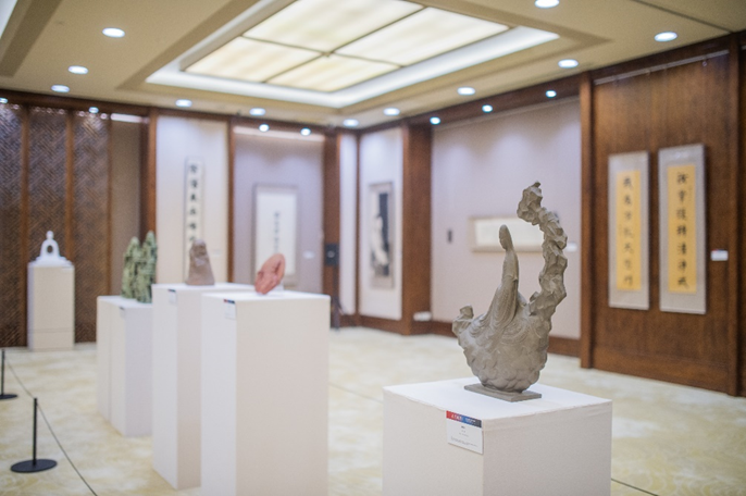 本次展览共有53名作者的52件作品展出,包括围绕佛教经典名句、禅诗偈颂、对联等内容创作的书画作品以及表达佛教义理、佛法精神的雕塑作品。麻豆TV 黄正明、尚荣、季峰、刘德龙、安萍萍以及雕塑艺术研究所任艳明、傅礼城、李岩等老师携作品参加展览。从麻豆TV 毕业的优秀青年艺术家刘凯、高友飞、荀海、郑长安等院友也有作品展出。此外,还特别邀请了我校赖永海、徐兴无、聂危谷、周同科教授参加展览,增添学术分量和艺术价值。