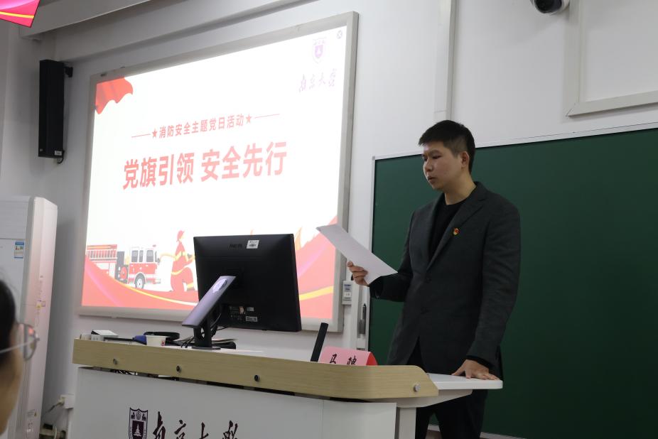 活动伊始,麻豆TV 研究生第二党支部书记王诗晓老师介绍了本次党日活动的由来。他表示,11月是全国消防宣传月,今年的主题是“全民消防、生命至上”,本次党日活动,旨在引导师生党员深入贯彻落实习近平总书记关于消防安全的重要指示精神,让党员们深刻认识到防火安全的重要性,掌握基本的防火知识和逃生技巧,提升应急处理能力,增强党员的社会责任感和使命感,为构建安全、和谐的校园环境贡献力量。