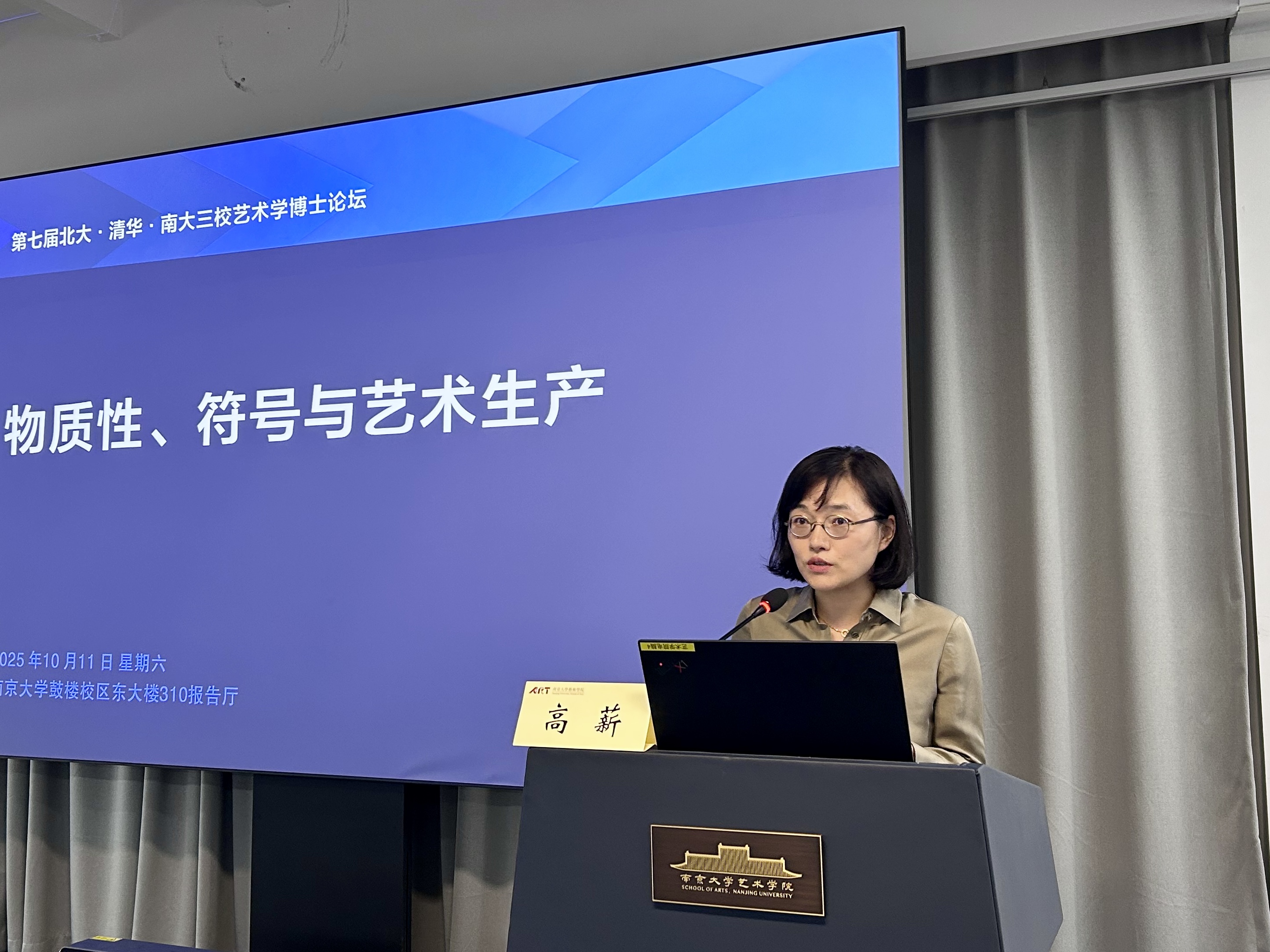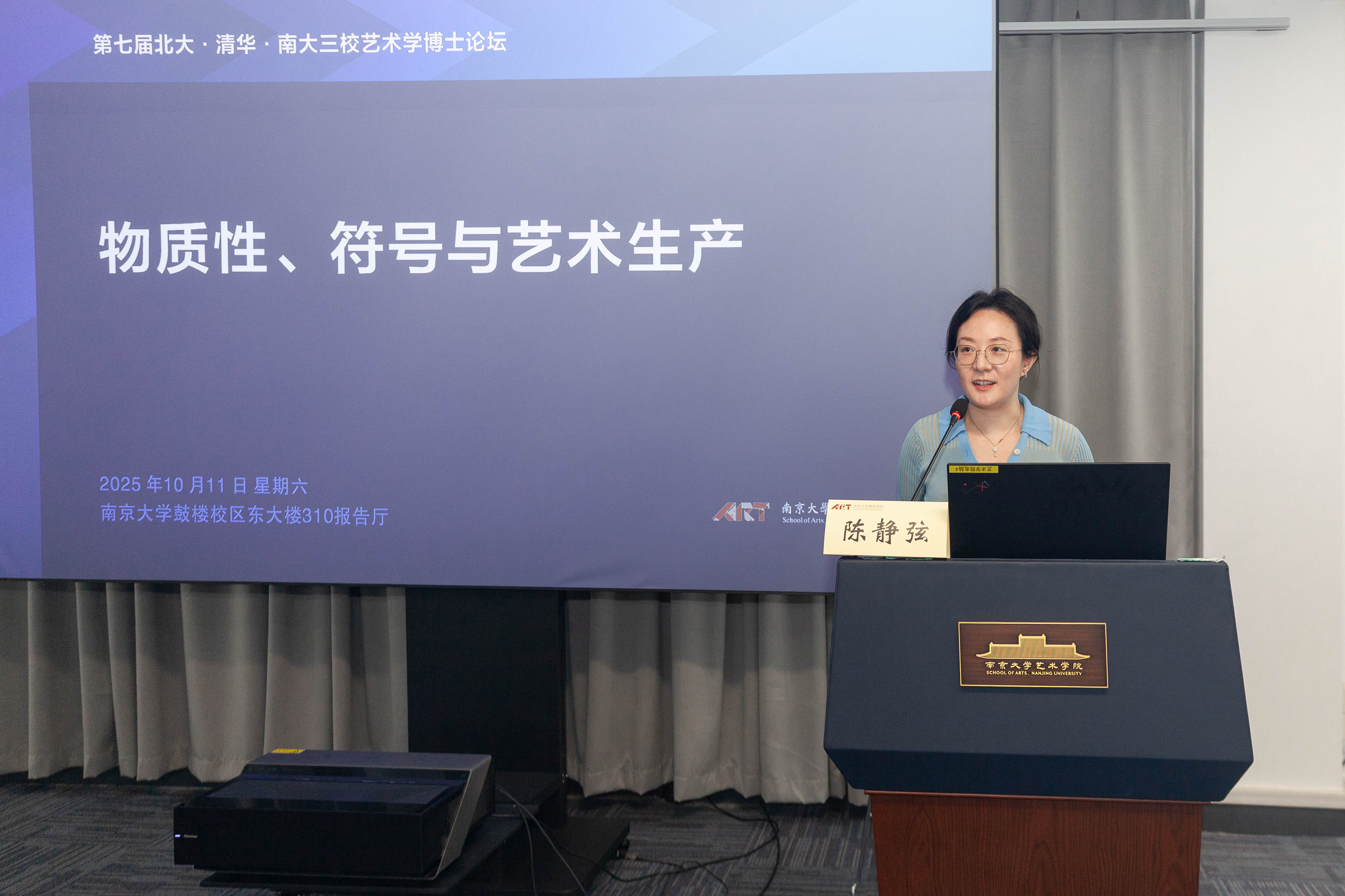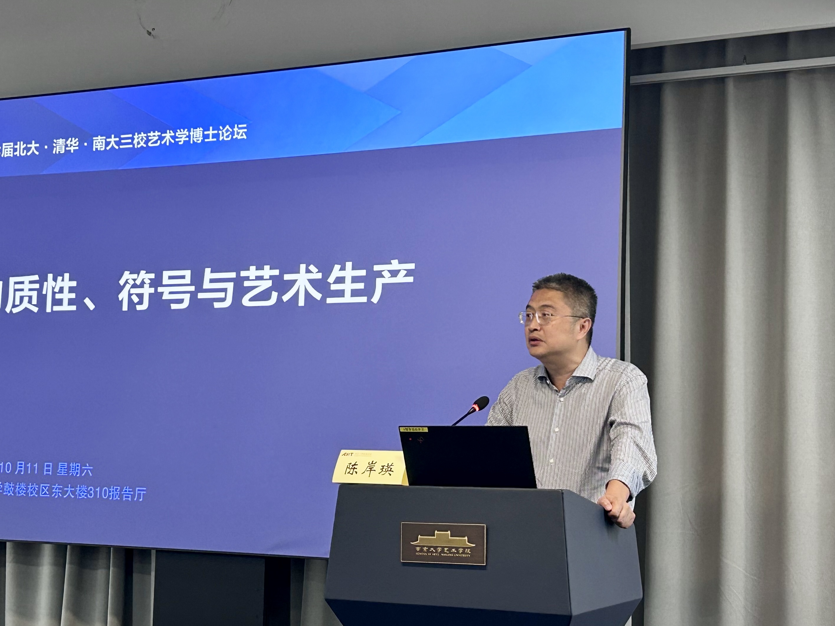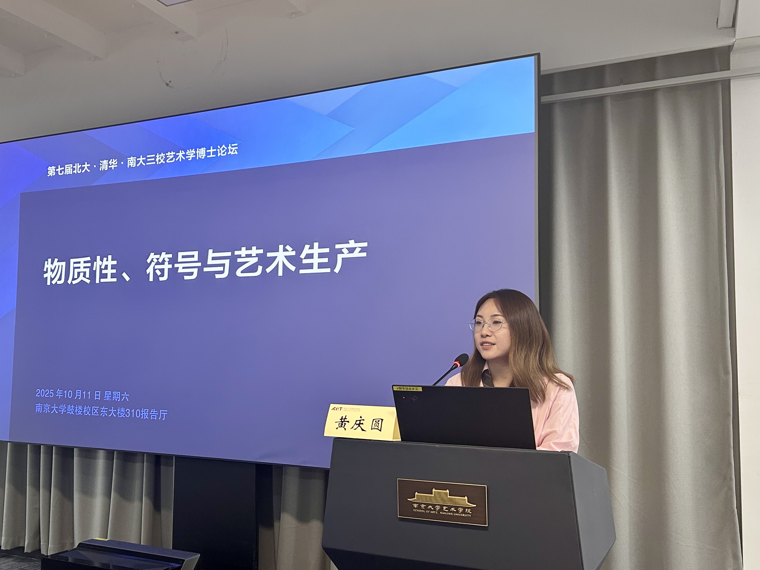 2025年10月11日,第七届北大·清华·南大三校艺术学博士生论坛于南京大学艺术学院东大楼310报告厅举行。依照北京大学艺术学院、南京大学艺术学院与清华大学美术学院艺术史论系联合(轮流)举办的惯例,本届论坛由南京大学艺术学院主办,论坛议题为“物质性、符号与艺术生产”。