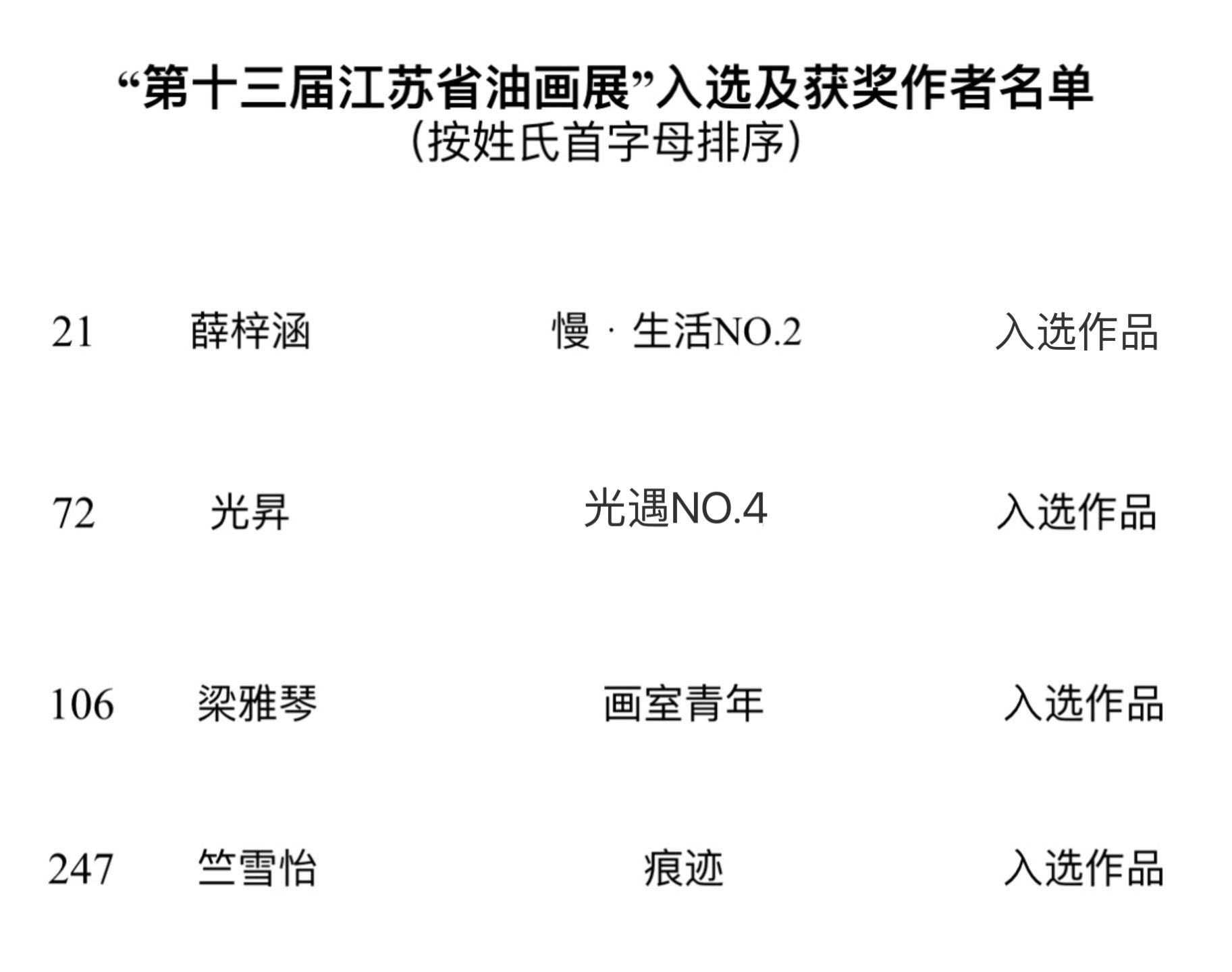 江苏省第十三届油画展 南京大学艺术学院入选名单