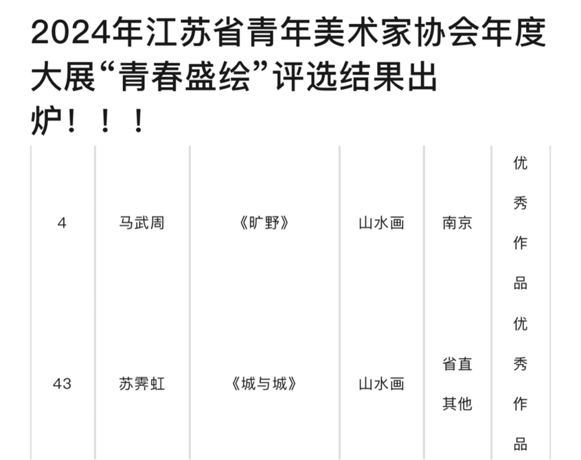 江苏省青年美术家协会2024年度大展南京大学艺术学院入选名单