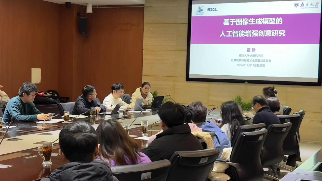2024年12月11日,来自南京大学计算机学院、艺术学院、建筑学院和钟山虚拟现实研究院、南京审计学院等单位的教师、专家及学生,在计算机学院一楼会议室围绕“AI+图形 for art”主题进行初次探讨。此会议是南京大学艺术学院刘德龙与计算机学院过洁两位老师跨专业碰撞后促成的初步成果,在会议中各位教师及团队围绕人工智能图像生成、传统美术与AI、城市AI和低效率识别优化更新、视觉设计AI等相关话题展开。