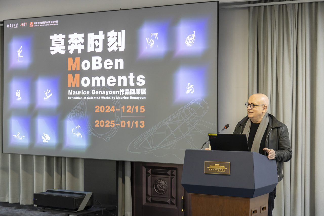 2024年12月15日下午,“莫奔时刻——Maurice Benayoun作品回顾展”在南京大学艺术学院东大楼美术馆开幕。本次展览由南京大学艺术学院、南京大学艺术与科技研究所共同主办,南京大学建筑与城市规划学院、南京大学人文社会科学双创人才实训中心协办,南京大学本科生院“本科教学联合创新实验室”项目支持,是新媒体艺术家、理论家和学者Maurice Benayoun教授正式入职南京大学的首次展览。