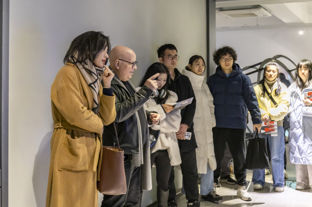 在参展过程中,本次展览艺术家、南京大学艺术学院教授Maurice Benayoun担任展览导览,按照展品顺序,为参与开幕式的嘉宾与观众进行作品讲解与作品展示,与观众进行了深入的讨论与互动。