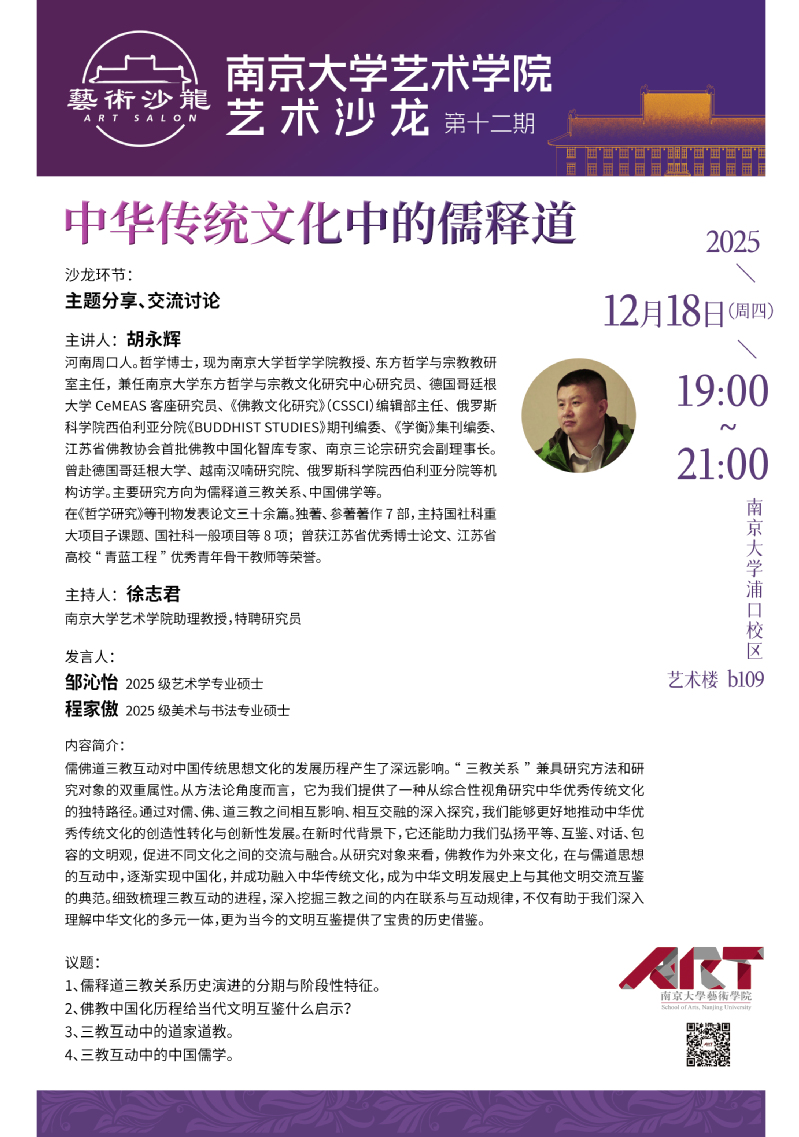 【编者按】为贯彻落实习近平总书记建设中国特色世界一流南大殷切嘱托和给我校留学归国青年学者重要回信精神,深入实施南京大学“奋进行动”,进一步浓厚浦口校区学术氛围,我院从2024年春季学期起,在浦口校区举办“艺术沙龙”品牌学术活动。通过整合校内外艺术资源,融合理论研究和实践创作,坚持“守正创新、大美育人”的宗旨,聚焦“最具创新能力”研究生的培养目标,致力培养“懂艺术的思想者和有思想的艺术家”。