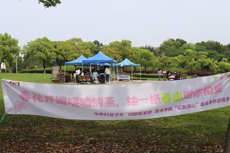 春光作序,万物和鸣,在这个充满生机的季节里,4月21日下午,艺术学院研究生会联合院团委“以美润心”艺术实践工作坊,在浦口校区15栋草坪上举办了一场别开生面的春日手作游园会,邀请同学们走出教室,踏入春意盎然的户外,用手中的画笔和材料捕捉春日的光影,创作出独一无二的手工艺品。阳光明媚,绿意盎然。树木新芽初绽,丛林再披青装。在这一片生机勃勃的景象中,我们的活动有序的开展着,同学们也纷至沓来,共同体验了一场充满创意与疗愈的手工之旅。
