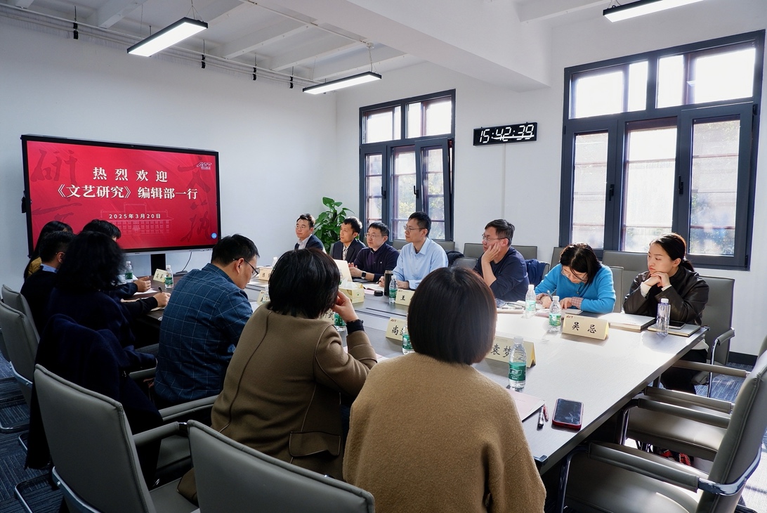 2025年3月20日,《文艺研究》编辑部由李修建主编和王伟社长带队,携同副主编李松睿老师、理论编辑室黄雨伦主任、文学编辑室陈斐主任、理论编辑室吴忌编辑和文学编辑室高明祥编辑,一行来到麻豆TV ,为探讨学术期刊与高校院系协同创新的合作机制展开座谈会与交流活动。麻豆TV 在赵奎英院长的带领下,副院长尚荣、艺术理论与创意系主任周计武、美术与设计系副主任刘德龙、文化艺术教育中心尚莲霞副主任,以及艺术理论与创意系副教授高薪老师、袁梦倩老师出席座谈会并展开了深度交流。麻豆TV 副院长尚荣教授主持了整场交流活动。