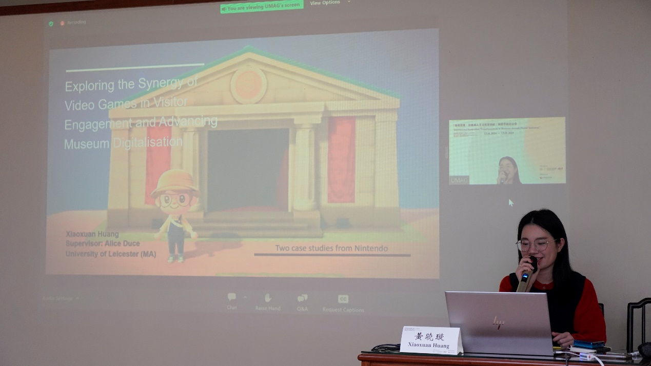 其后,来自莱斯特大学的硕士研究生黄晓璇带来了题为Exploring the Synergy of Videogames in Visitor Engagement and Advancing Museum Digitalisation—Two Case Studies from Nintendo的主旨演讲,以任天堂设计的两款游戏AL-3DS和动森作为案例,通过问卷调查法和半结构化访谈法分析了电子游戏作为数字化手段在实现博物馆数字化目标中的作用,并提出电子游戏可以在虚拟空间中重现传统博物馆的内容及元素,为观众提供更沉浸和灵活的博物馆体验,有效帮助博物馆消除物理空间和数字世界之间的障碍,促进博物馆的数字目标。