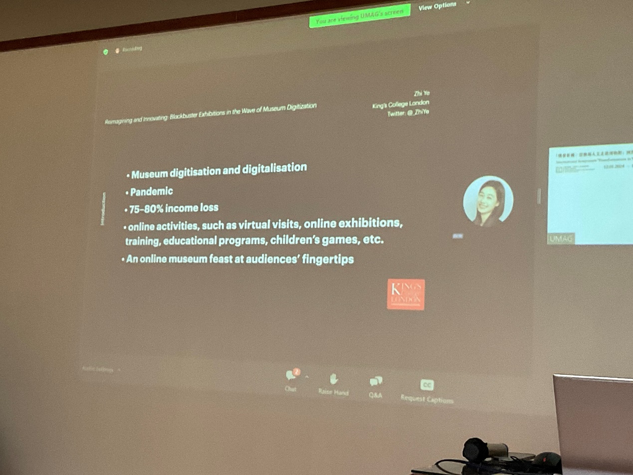 其后,来自英国伦敦国王学院的博士研究生叶知发表了题为Reimagining and Innovating: Blockbuster Exhibitions in the Wave of Museum Digitization的主旨演讲,旨在聚焦于大片展览在数字化趋势下的演变,评估了数字技术和在线互动内容对大片展览形式的影响,并指出虽然数字化开拓了博物馆展览展示和教育的新途径,但空间设计、实体展品和线下的观众互动等核心元素仍对观众的博物馆体验至关重要。