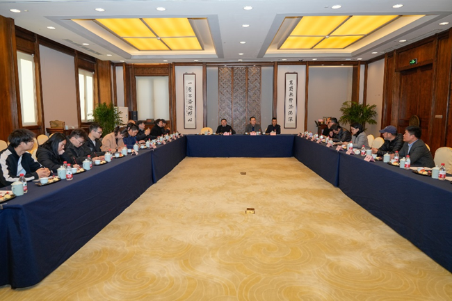 开幕式结束之后,召开了“天花烂漫——当代中国佛教文化艺术邀请展”座谈会。本次座谈会由尚荣教授主持,他对无锡市文联、文旅局、灵山集团等单位对本次展览的大力支持表示衷心的感谢,表示以后将在展览形式、规模等方面做出努力。艺术学院安萍萍老师、高友飞院友进行了发言,他们表示艺术家们不仅要传承和弘扬中华优秀传统文化艺术,更要在佛教题材艺术作品中体现时代性与当代性,并服务于社会发展实践。