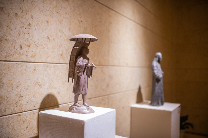 本次展览共有53名作者的52件作品展出,包括围绕佛教经典名句、禅诗偈颂、对联等内容创作的书画作品以及表达佛教义理、佛法精神的雕塑作品。艺术学院黄正明、尚荣、季峰、刘德龙、安萍萍以及雕塑艺术研究所任艳明、傅礼城、李岩等老师携作品参加展览。从艺术学院毕业的优秀青年艺术家刘凯、高友飞、荀海、郑长安等院友也有作品展出。此外,还特别邀请了我校赖永海、徐兴无、聂危谷、周同科教授参加展览,增添学术分量和艺术价值。