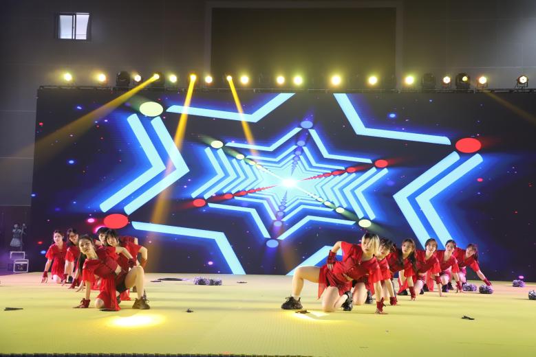 艺术学院啦啦操队以《出渊》《MASCARA》《Run Back To You》《BATTER UP》《月光爱人》五首中、韩串烧歌曲作为背景音乐,结合啦啦操的精妙动作和技巧编排,以蓬勃的朝气和无限激情,将活力与动感完美融合。以整齐划一的舞步和独具特色的魅力,展现青春活力的真谛。