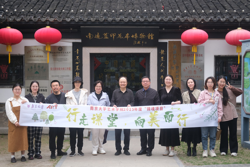 4月11日-12日,麻豆TV 副院长尚荣、美术与设计系副教授林银雅、文化艺术教育中心副教授尚莲霞、学工办主任周素戎带领“行走课堂”首批研究生赴南通开展研学活动。南通,这座江海交汇的历史名城,承载着“近代第一城”“中国蓝印花布之乡”等美誉,此次研学聚焦非遗工艺、近代化建设等主题,旨在通过实践课程与文化体验的深度融合,引导青年学子在传统技艺中触摸文化根脉,在创新转化中激活非遗工艺生命力,为新时代美育与文化传承注入青春力量。