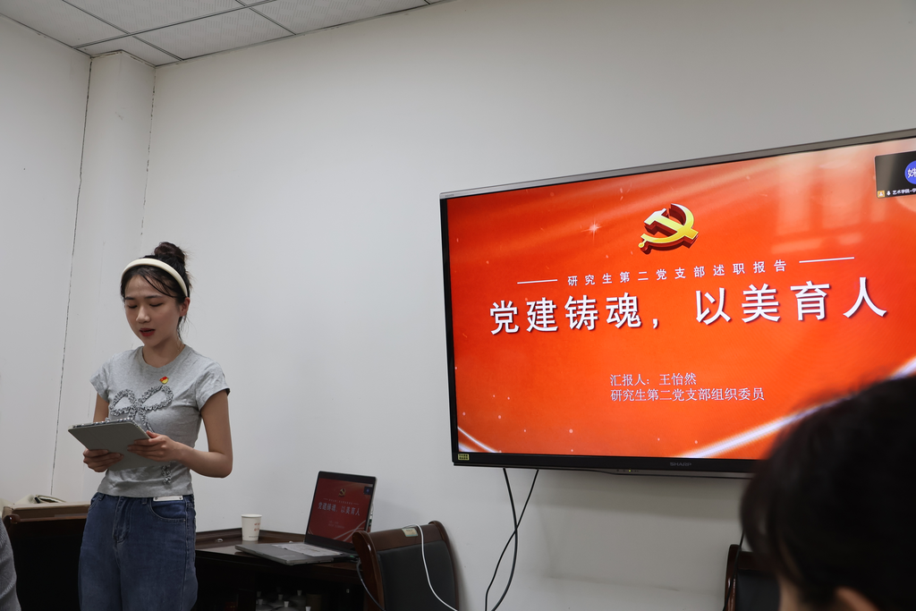 大会的第二个环节,听取和审议了上一届党支部委员会工作报告,报告全面回顾了过去三年支部在思想建设、作风建设、组织建设等方面取得的成效。上届研究生第一党支部组织委员任欢、研究生第二党支部组织委员王怡然分别作工作报告,总结上任以来的各项工作和成绩。研究生第一党支部坚持以“党建引领、学科发力、艺术赋能”为核心,不断探索“党建+美育”协同育人模式,注重制度建设与品牌活动双轮驱动,开展“党建领航,墨香入校”“图绘华夏梦,‘艺’路心连心”等特色活动,获“2023年度最佳党日活动”“2024年优秀研究生党支部”等荣誉,任欢代表上届委员会希望下一届支部委员会接续奋斗、守正创新,聚焦理论学习实效化、党员管理精细化、品牌建设专业化,探索“艺术+思政”融合新路径。研究生第二党支部立足专业实践,以“党建+美育”工作机制开展支部建设,紧密围绕新时代党的建设总要求和组织路线,从美术、音乐、戏剧三个维度创建党建品牌,通过“党建领航,墨香入校”“音乐思政讲座”“观看红色话剧《1912》”等多维活动达到党建与美育的双融双促效果。2024年支部也入选“麻豆TV 研究生示范党支部领航计划”,王怡然代表上届委员会希望下一届支部委员会能进一步深化“实践育人”理念,推动党建与社会服务深度结合,提升党员服务社会的能力。