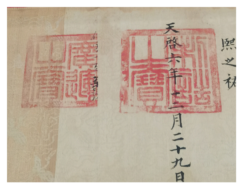 师生一行继续参观圣旨博物馆,考察明清圣旨。圣旨博物馆收藏明清圣旨两百余道,其中,从顺治皇帝到末代皇帝溥仪十朝圣旨序列完整。馆中还收藏有明清龙袍、瓷器、玉器、青铜器等宫廷用品和书画珍品,以及民国荣典褒奖状。